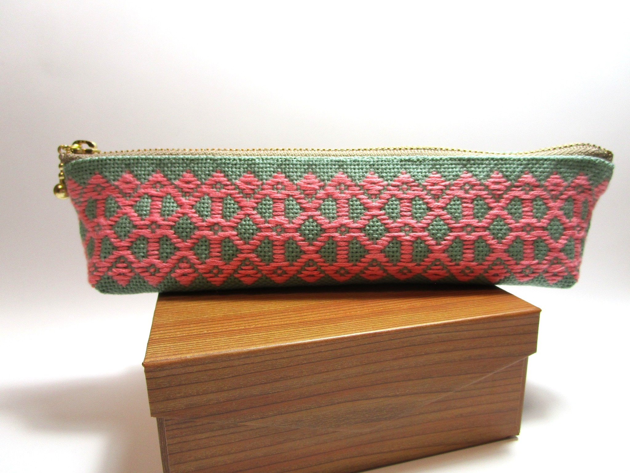 伝統模様・猫の肉球を模した『猫の足あと』の刺繍を施しましたペンケース。