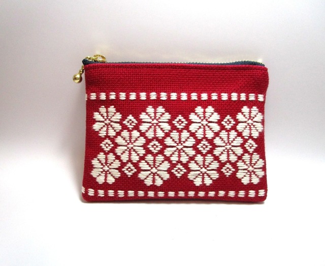 『こぎん刺し』 ✳️花つなぎ✳️ファスナーポーチ ◆ワインレッド*オフホワイト◆