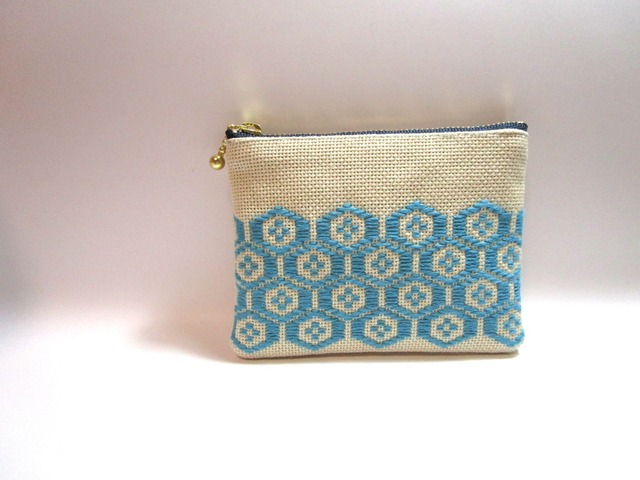 『こぎん刺し』✳️亀甲模様✳️ ファスナーポーチ ◆ベージュ*ターコイズ◆
