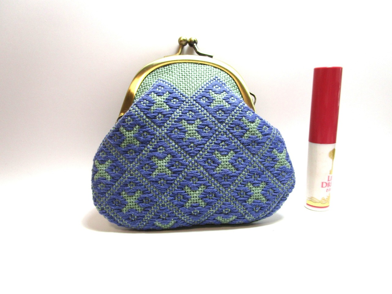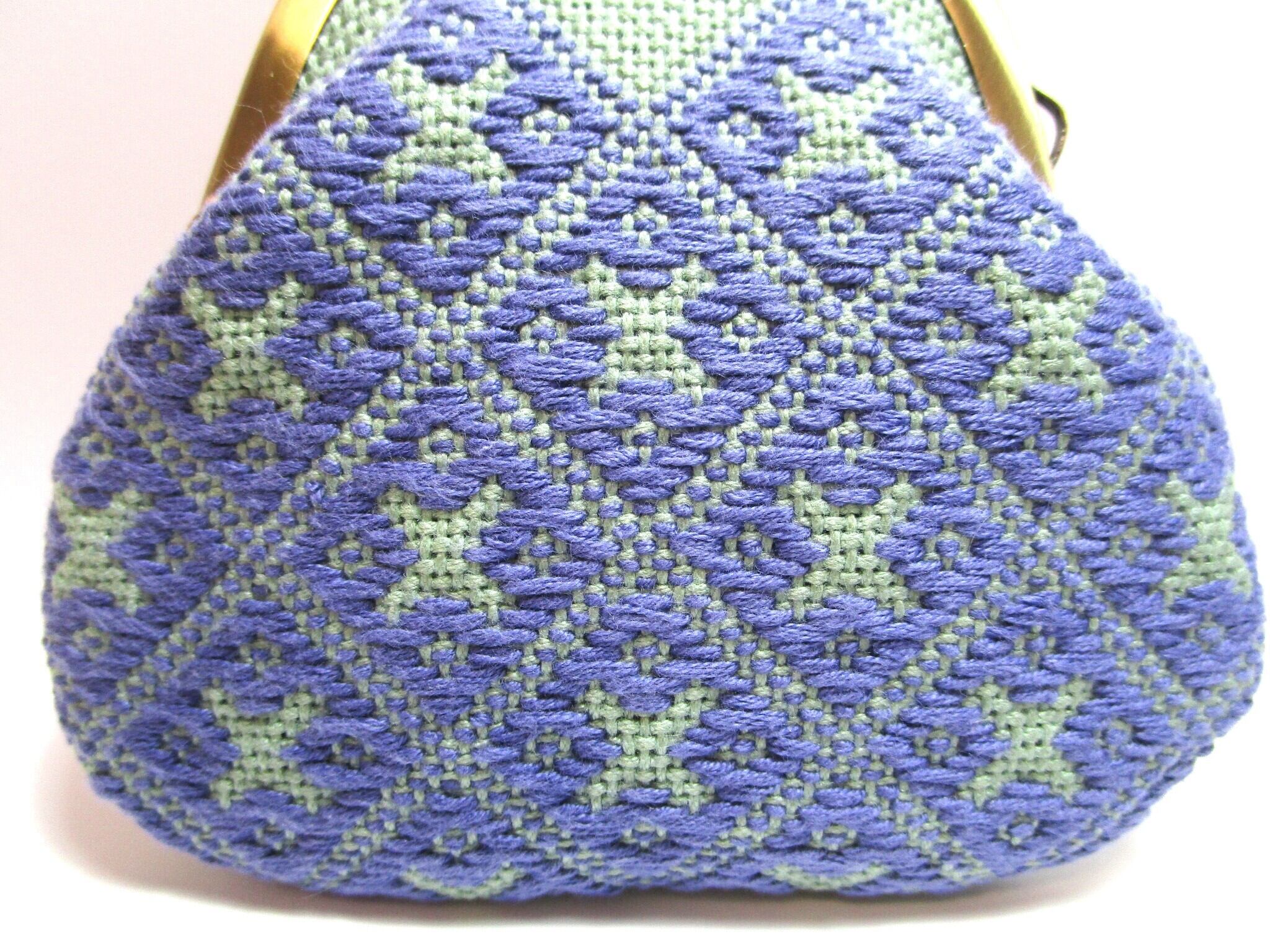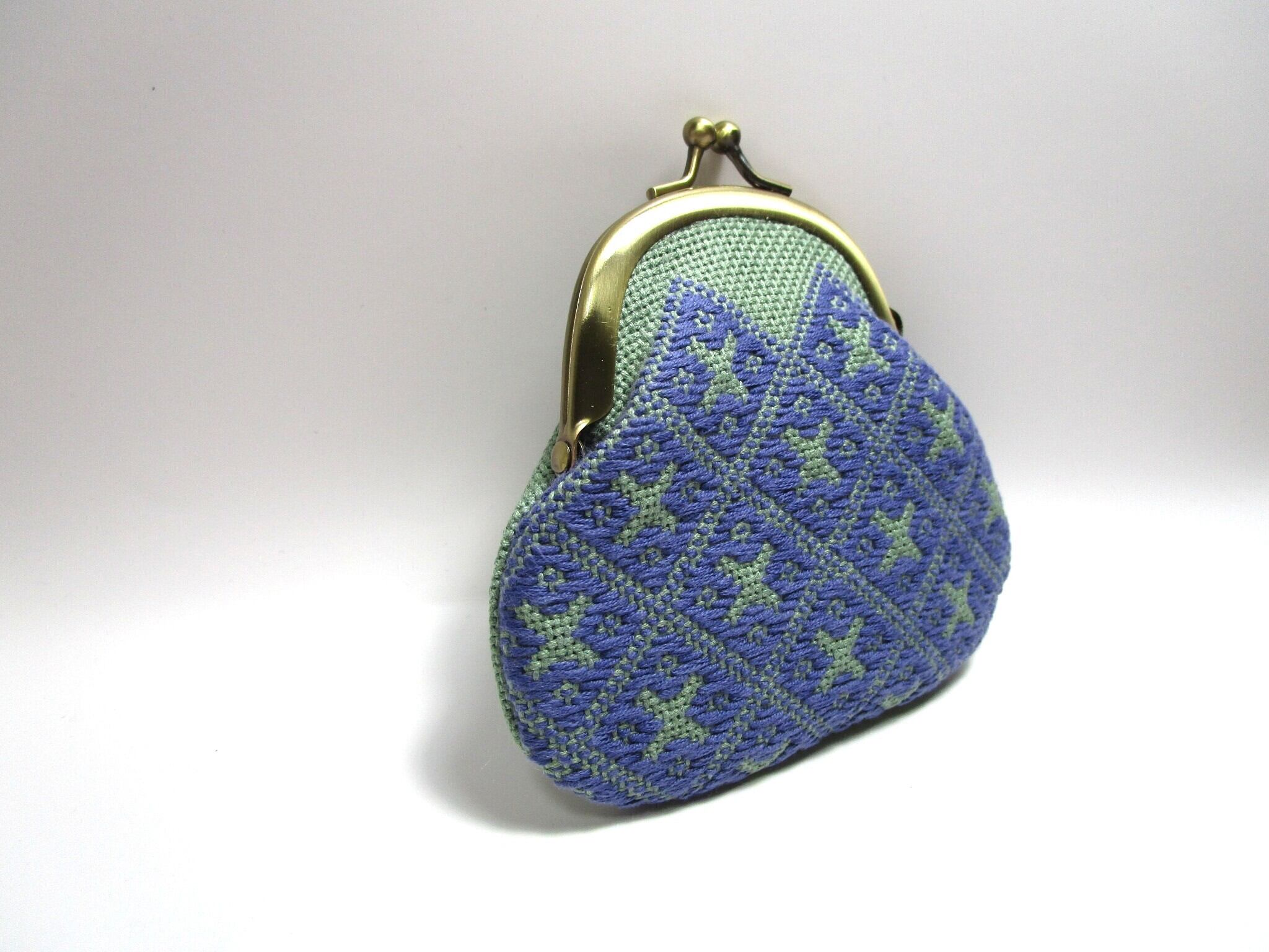 『こぎん刺し』✳️小枕✳️がま口 手のひらサイズ < 小銭入れ・ミニ財布 > ◆ソフトグリーン*ブルー◆