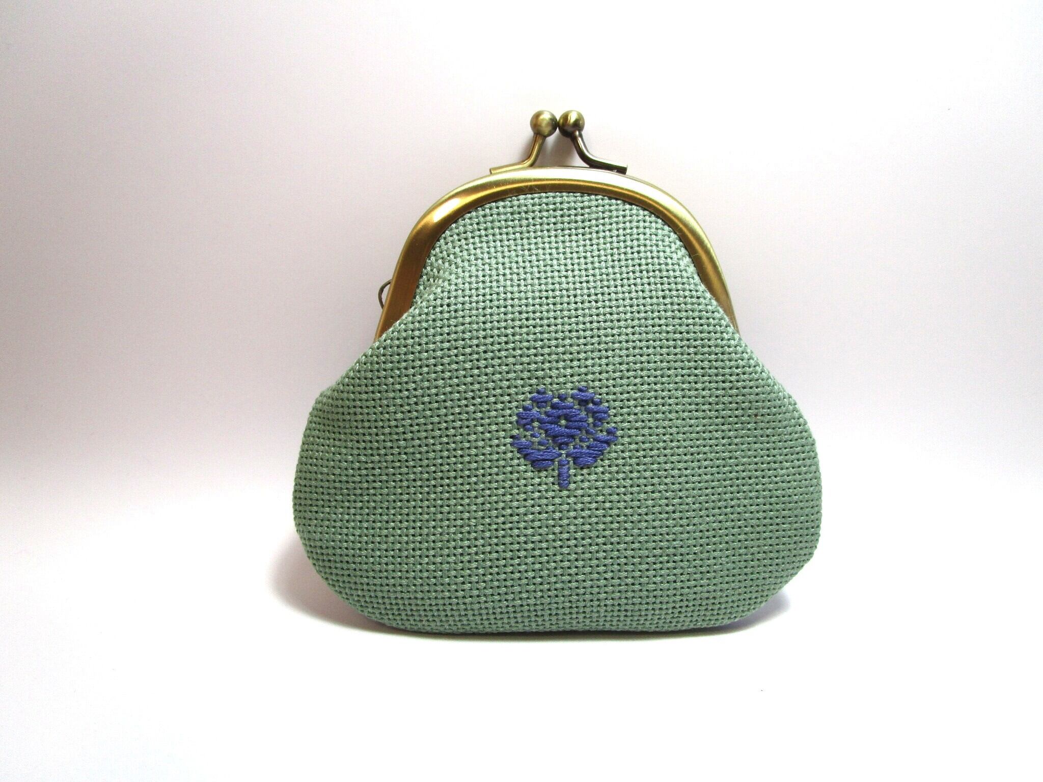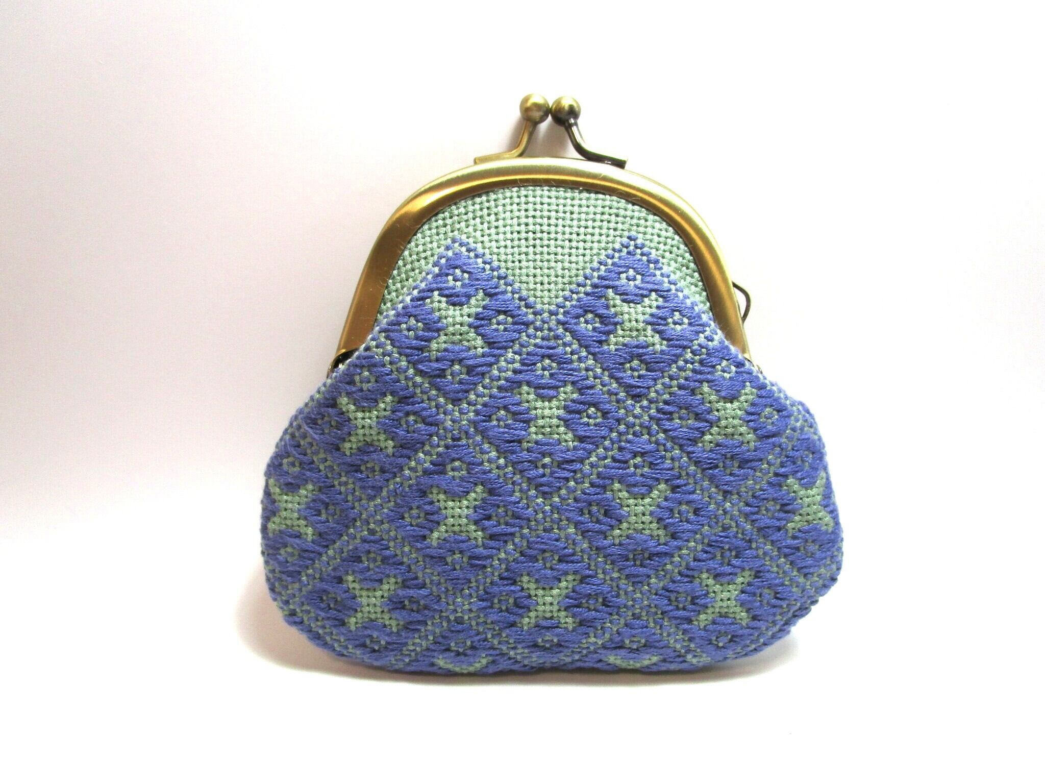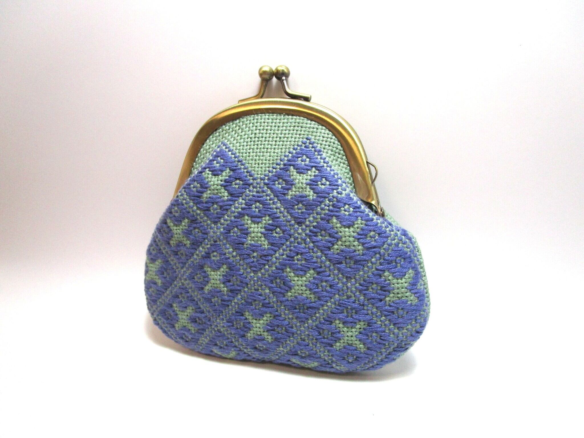 『こぎん刺し』✳️小枕✳️がま口 手のひらサイズ < 小銭入れ・ミニ財布 > ◆ソフトグリーン*ブルー◆