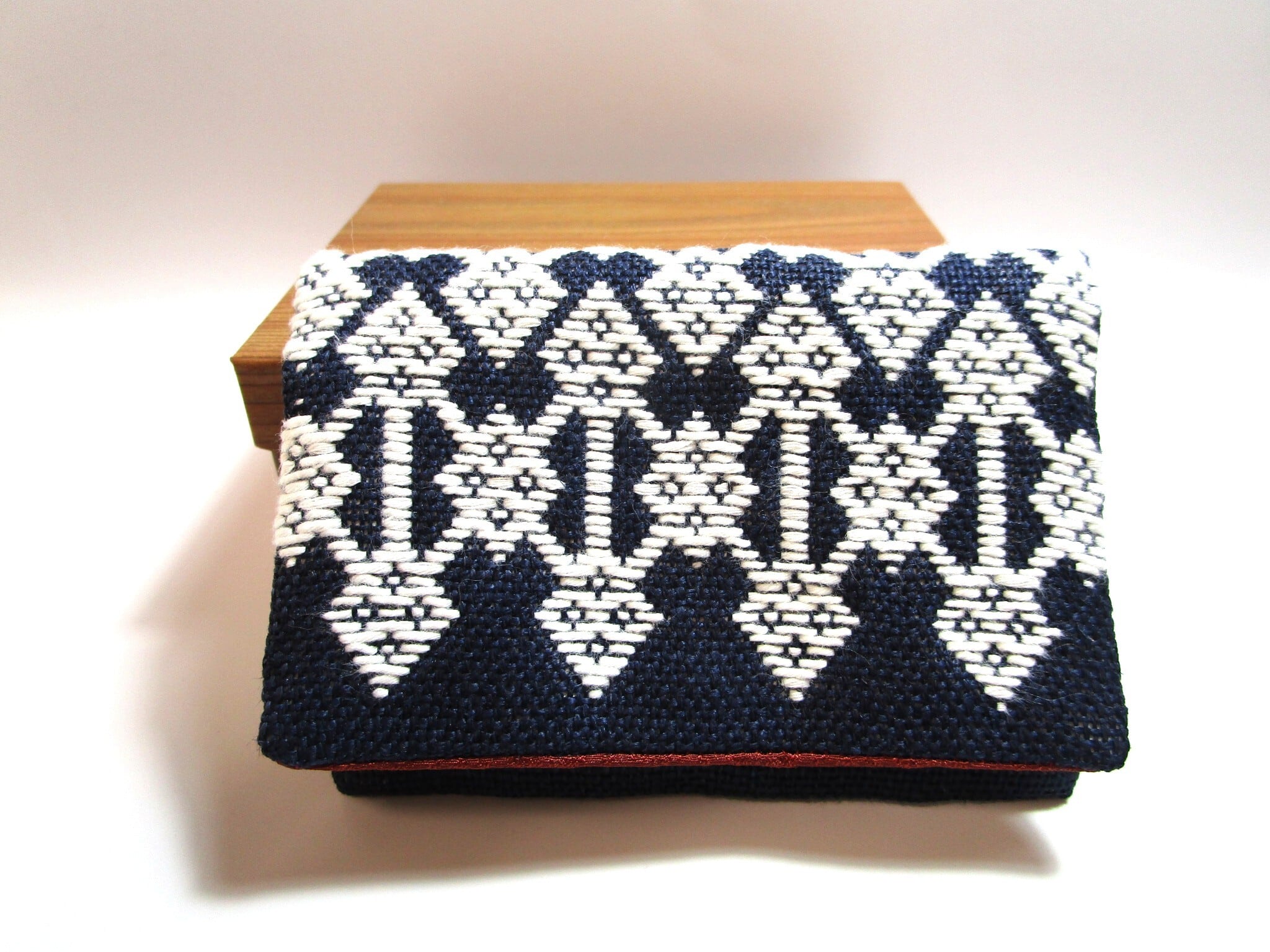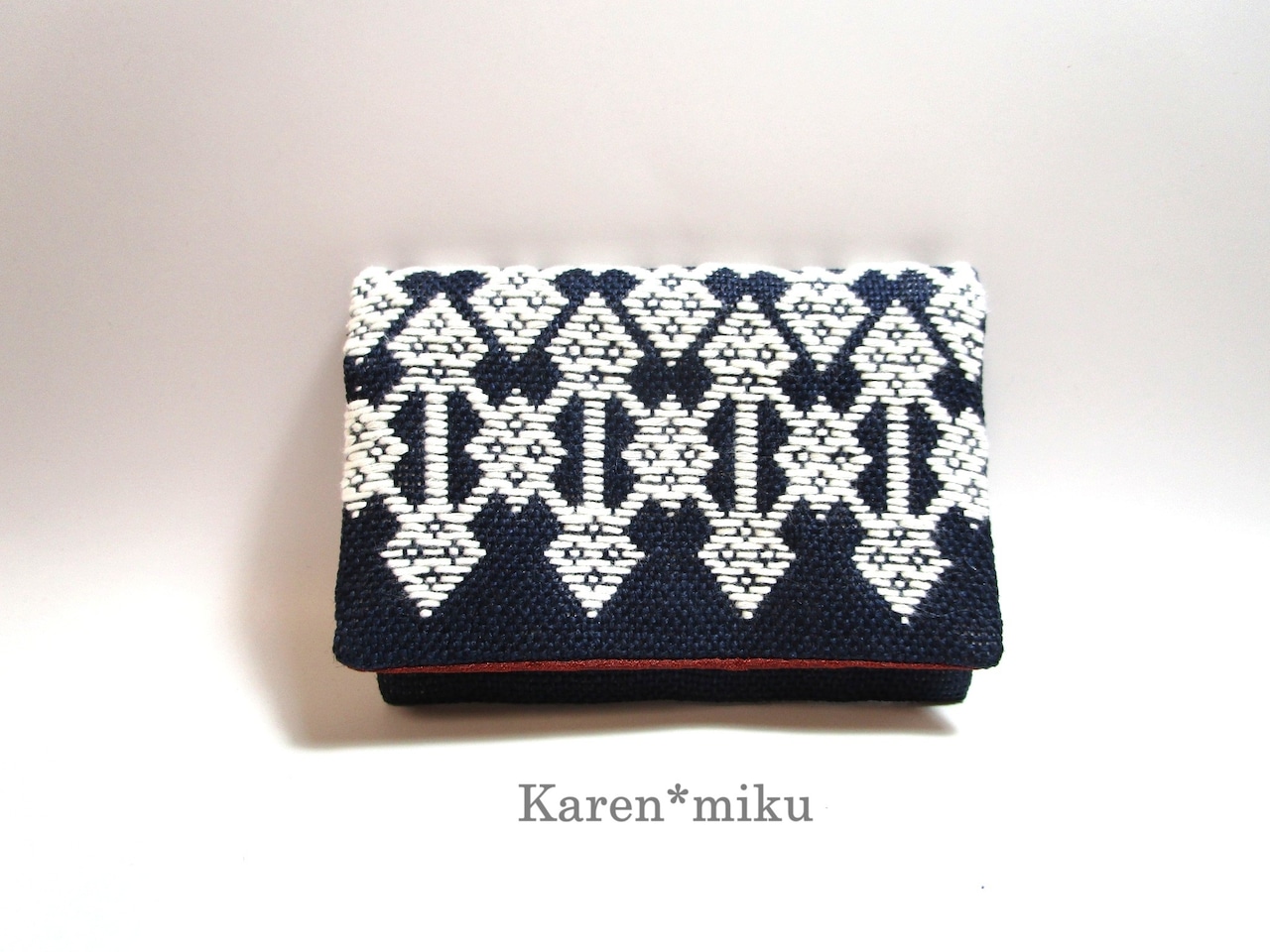 『こぎん刺し』おしゃれなカードケース・名刺入れ◆ネイビー*ホワイト◆