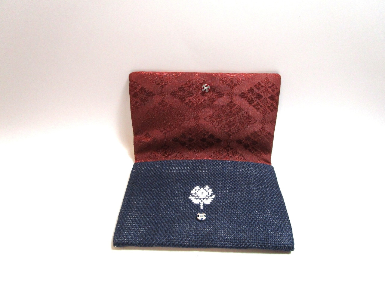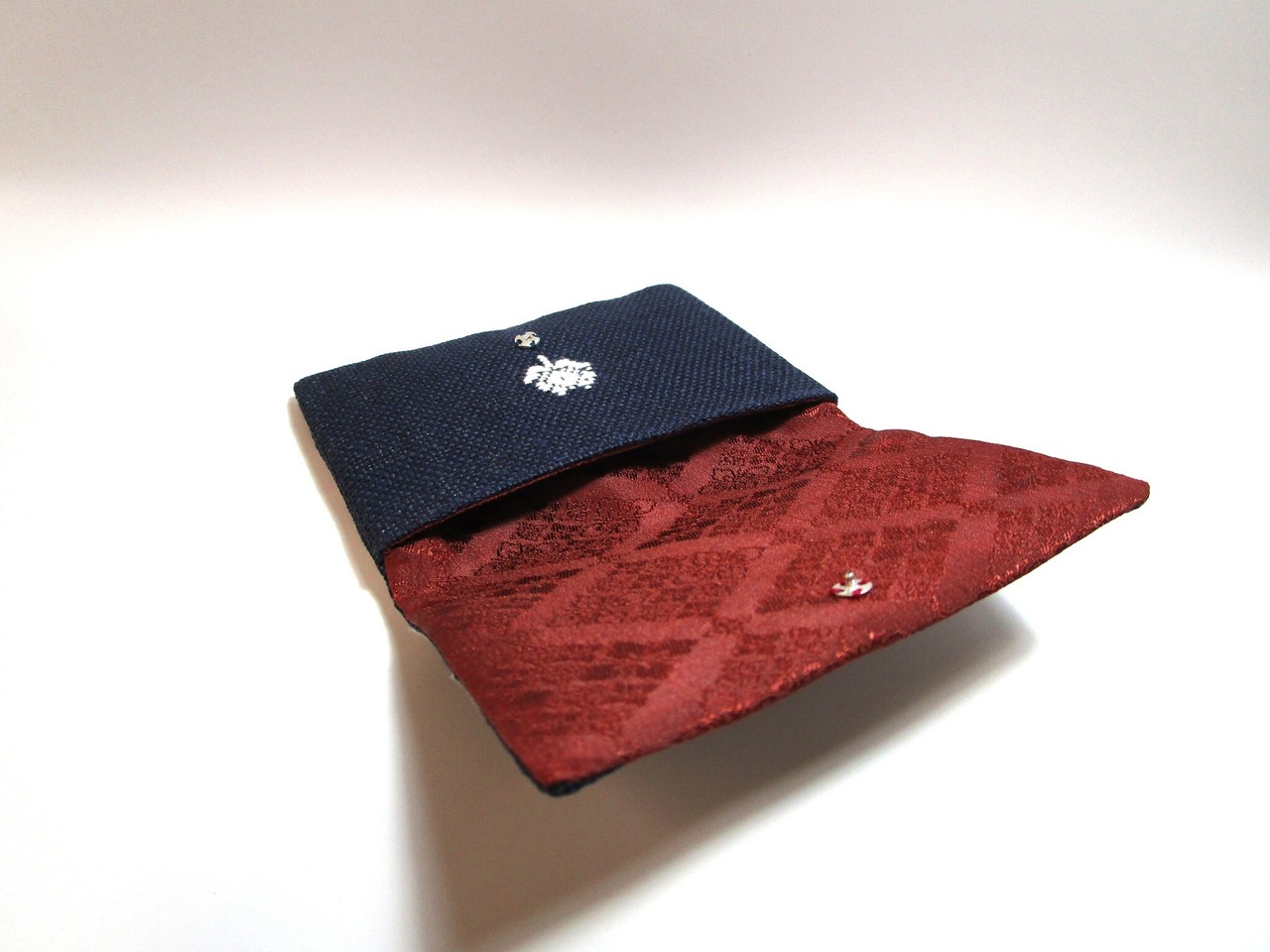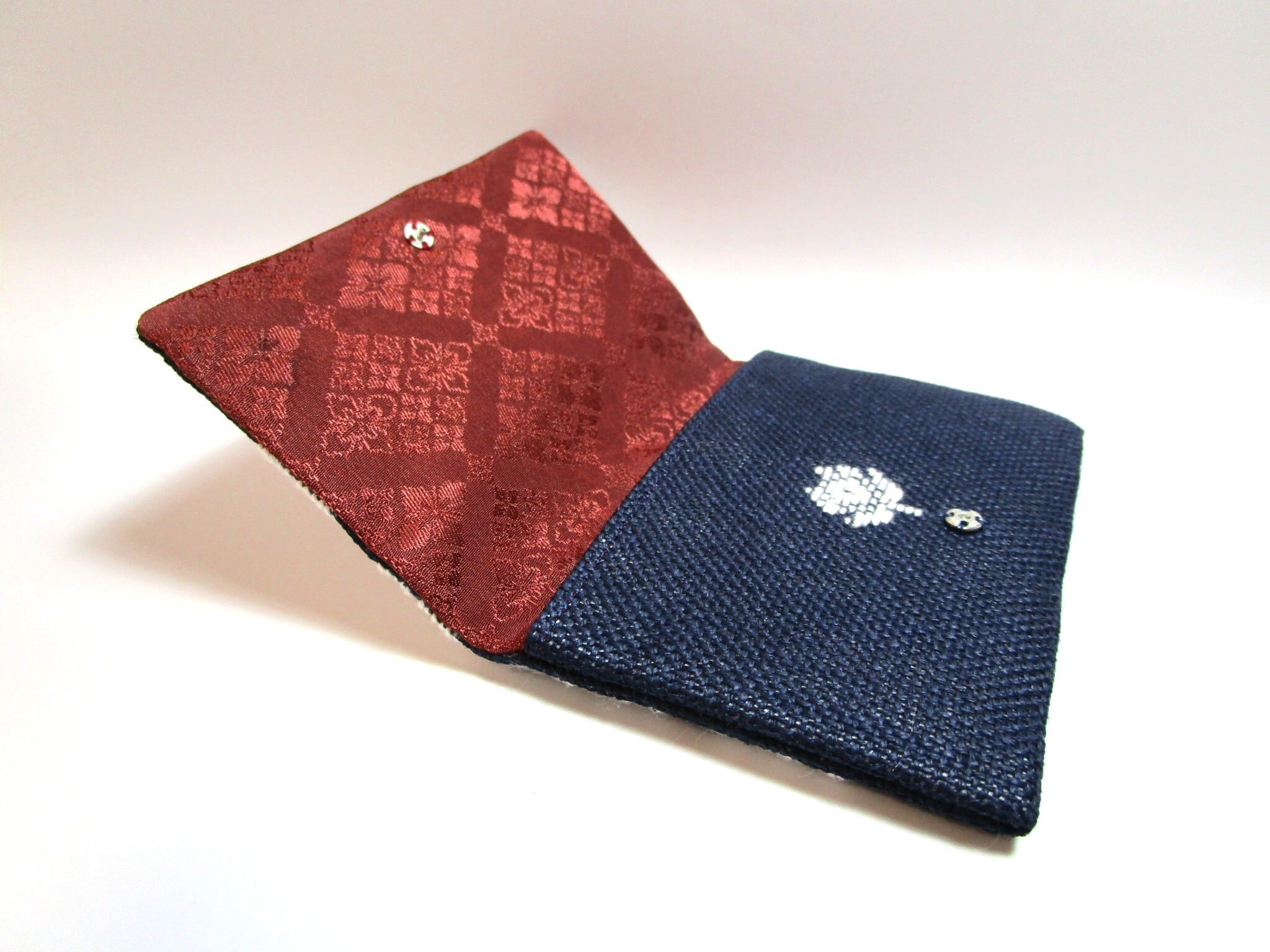内布には、幸菱・栗梅色(栗色を帯びた濃い赤茶色)の綸子生地を使用しており、名刺やカードをしっかりと保護します。