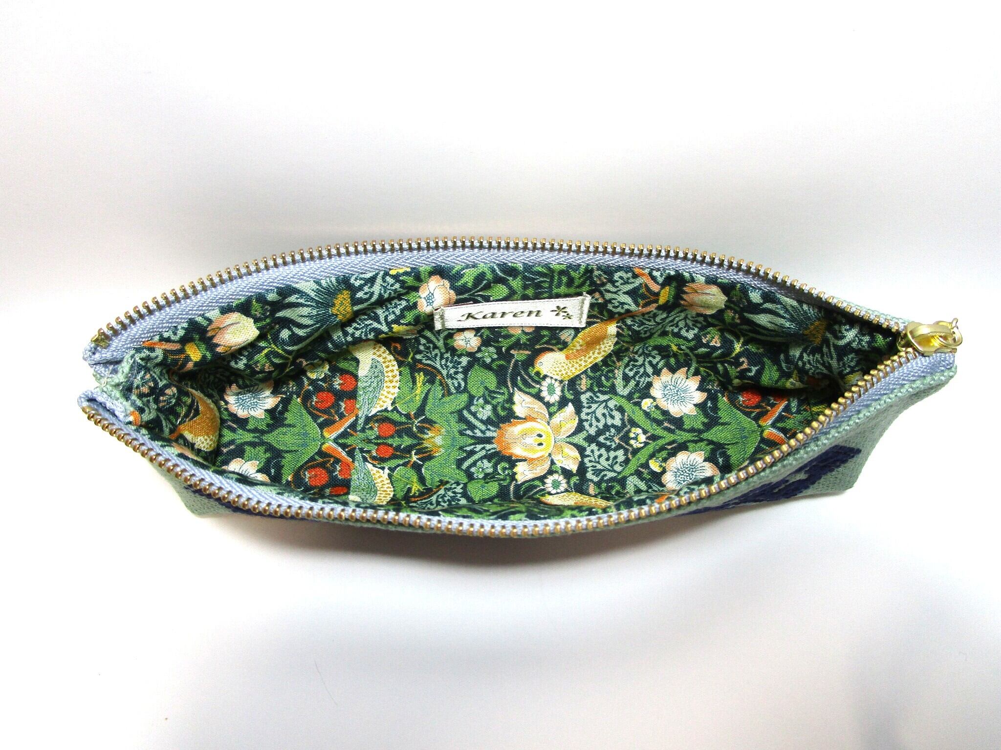 内布には鳥と植物が調和した温かみのあるウィリアムモリスの『いちご泥棒』のシーチング生地を使用しており、ペンやメガネを丁寧に保護します。