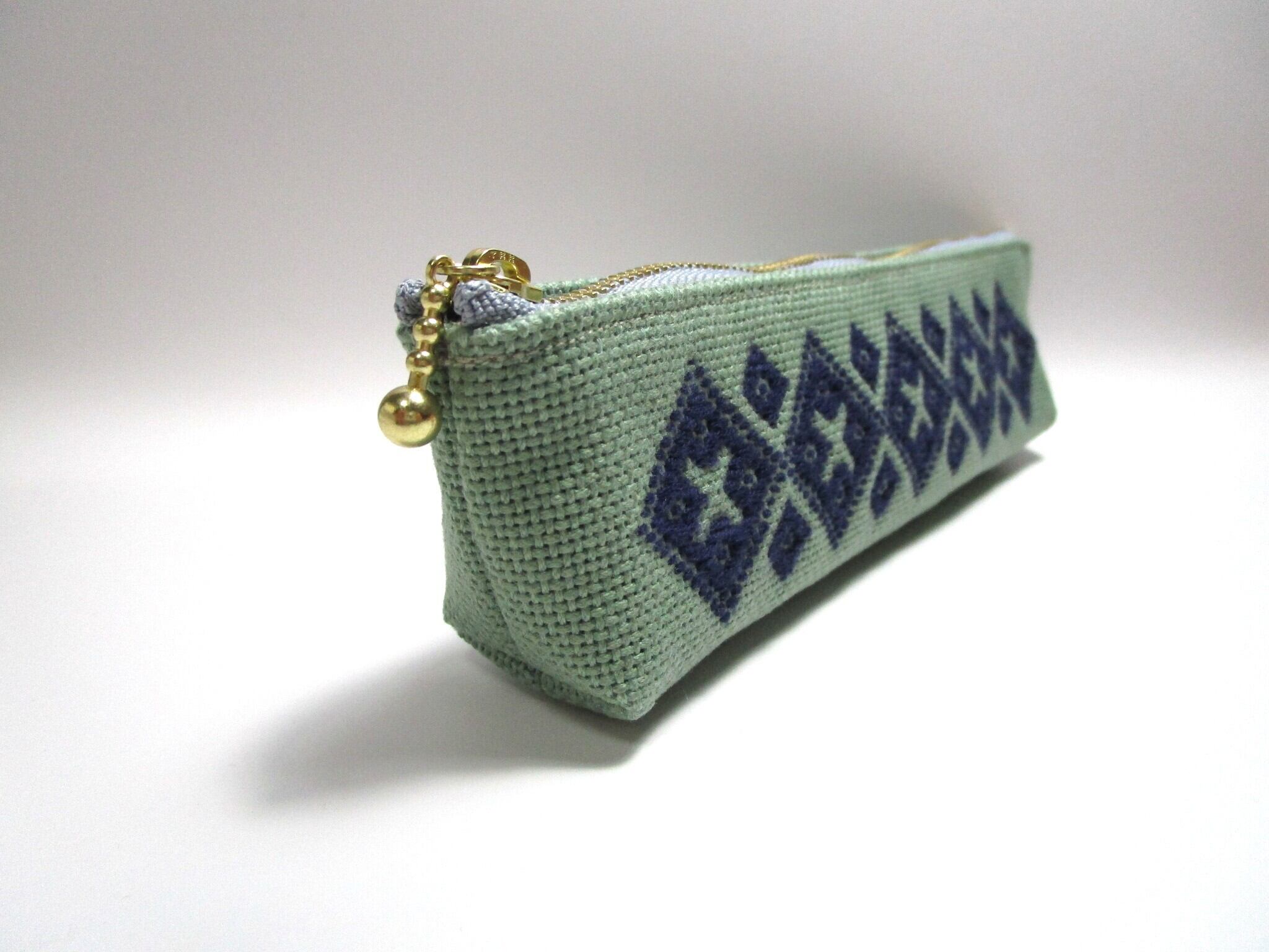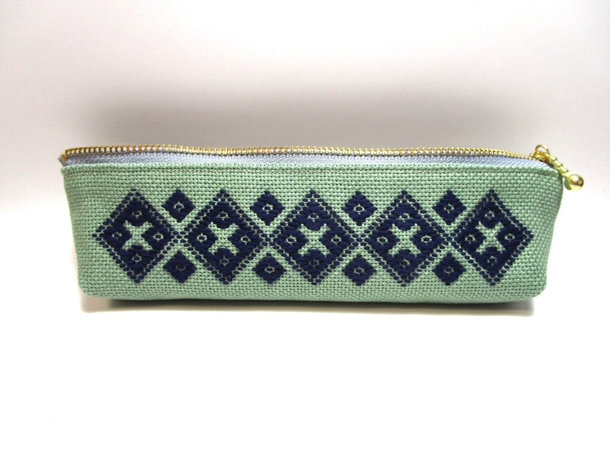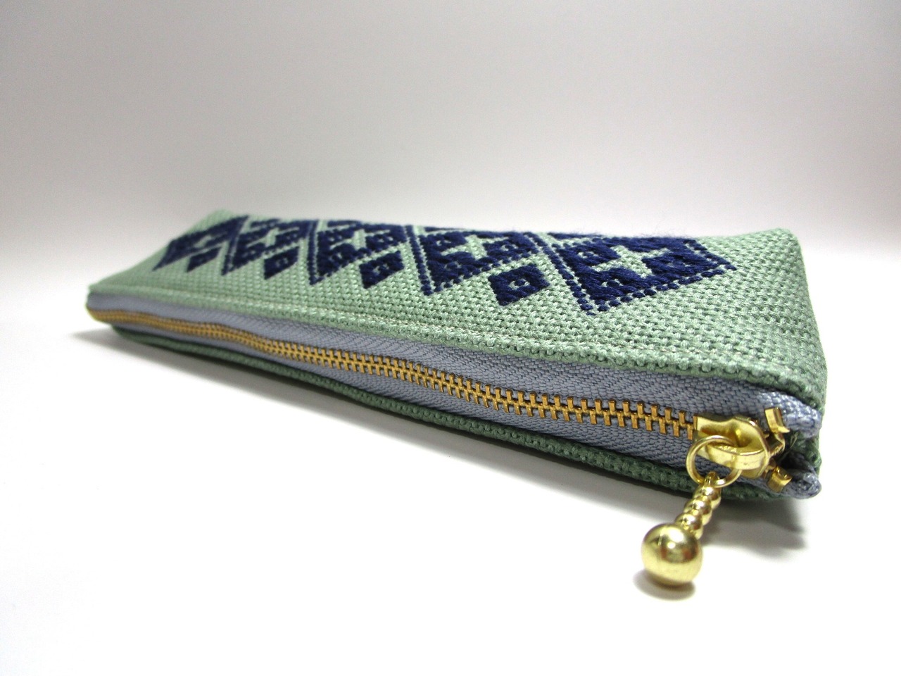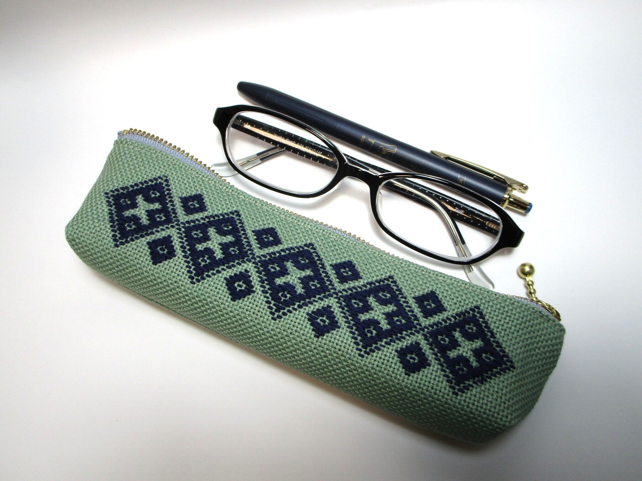 『こぎん刺し』✳️小枕✳️ペンケース・メガネケース◆ライトグリーン*ネイビー◆
