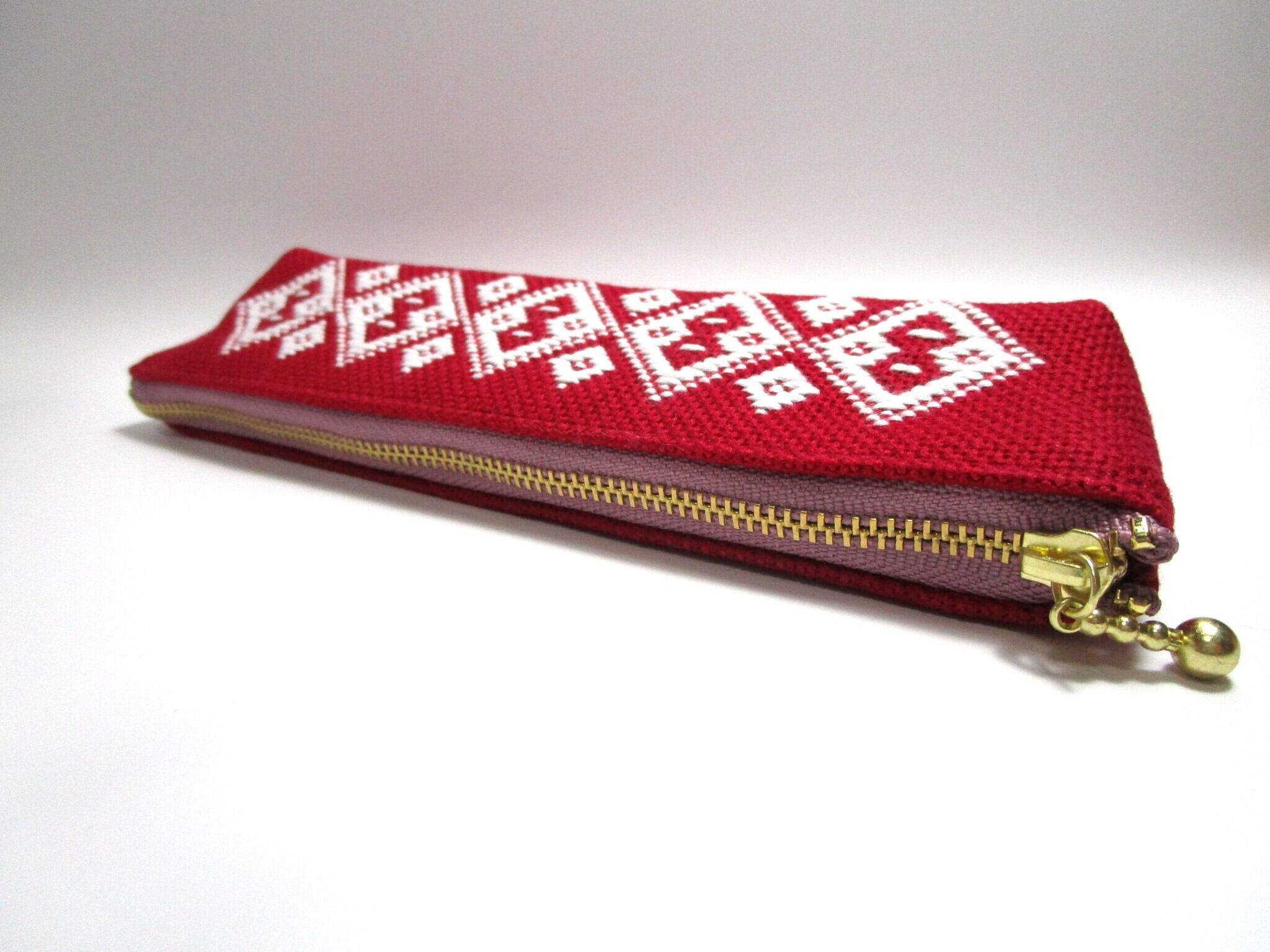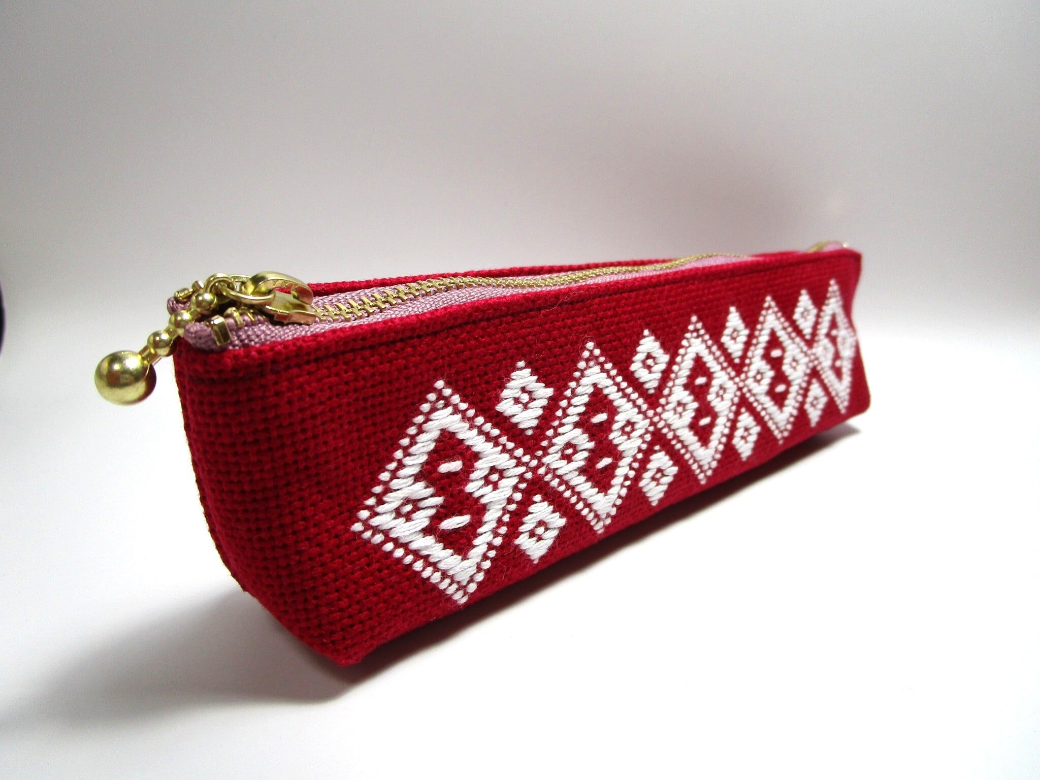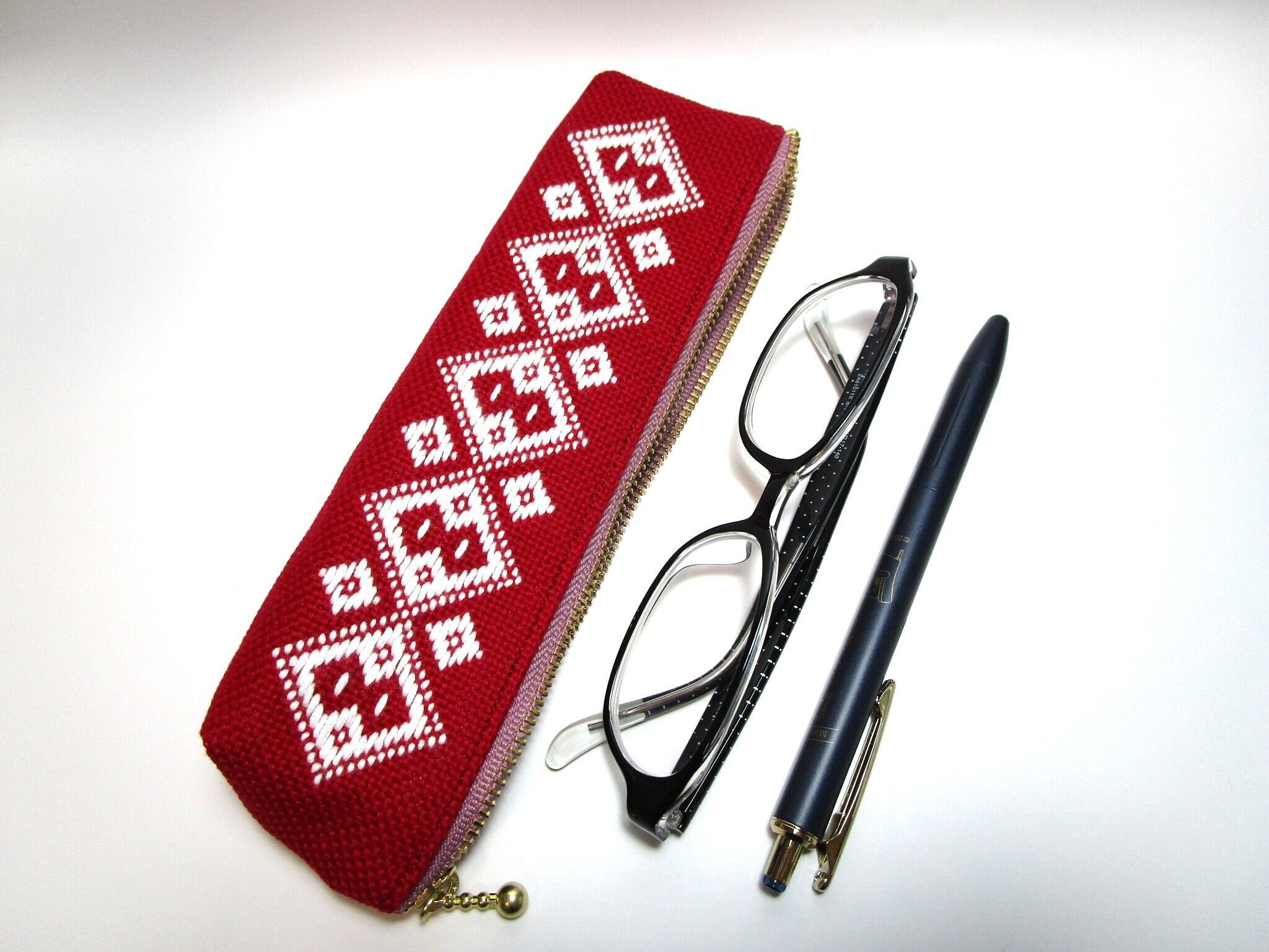 『こぎん刺し』✳️ひょうたん✳️ペンケース ・メガネケース◆ワインレッド*ホワイト◆