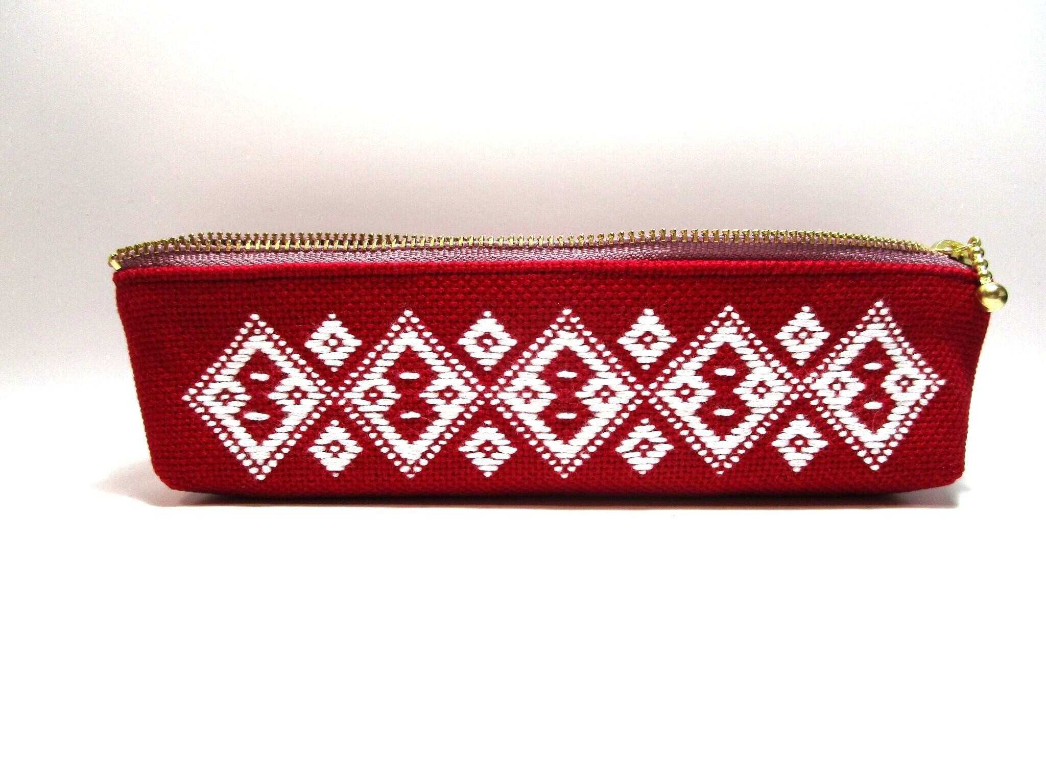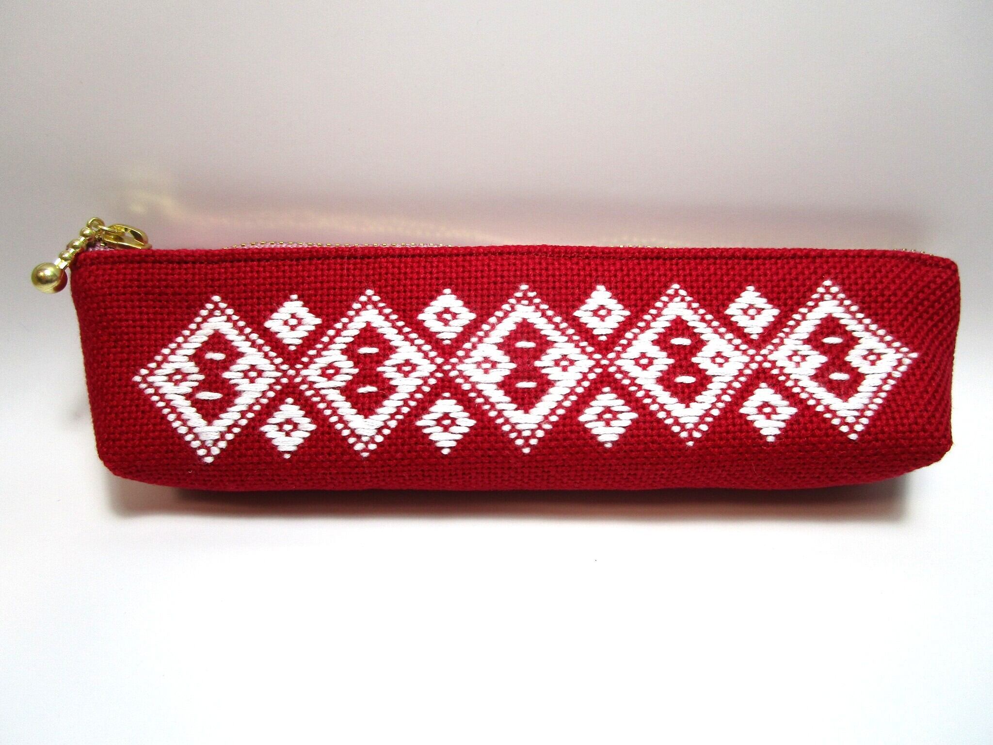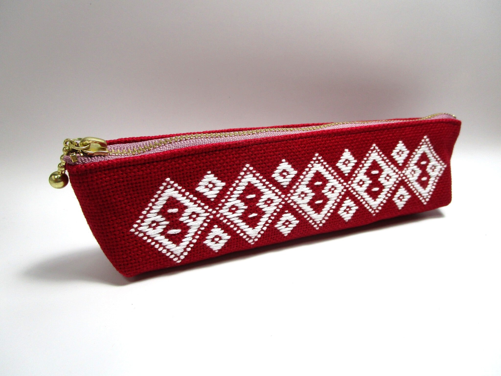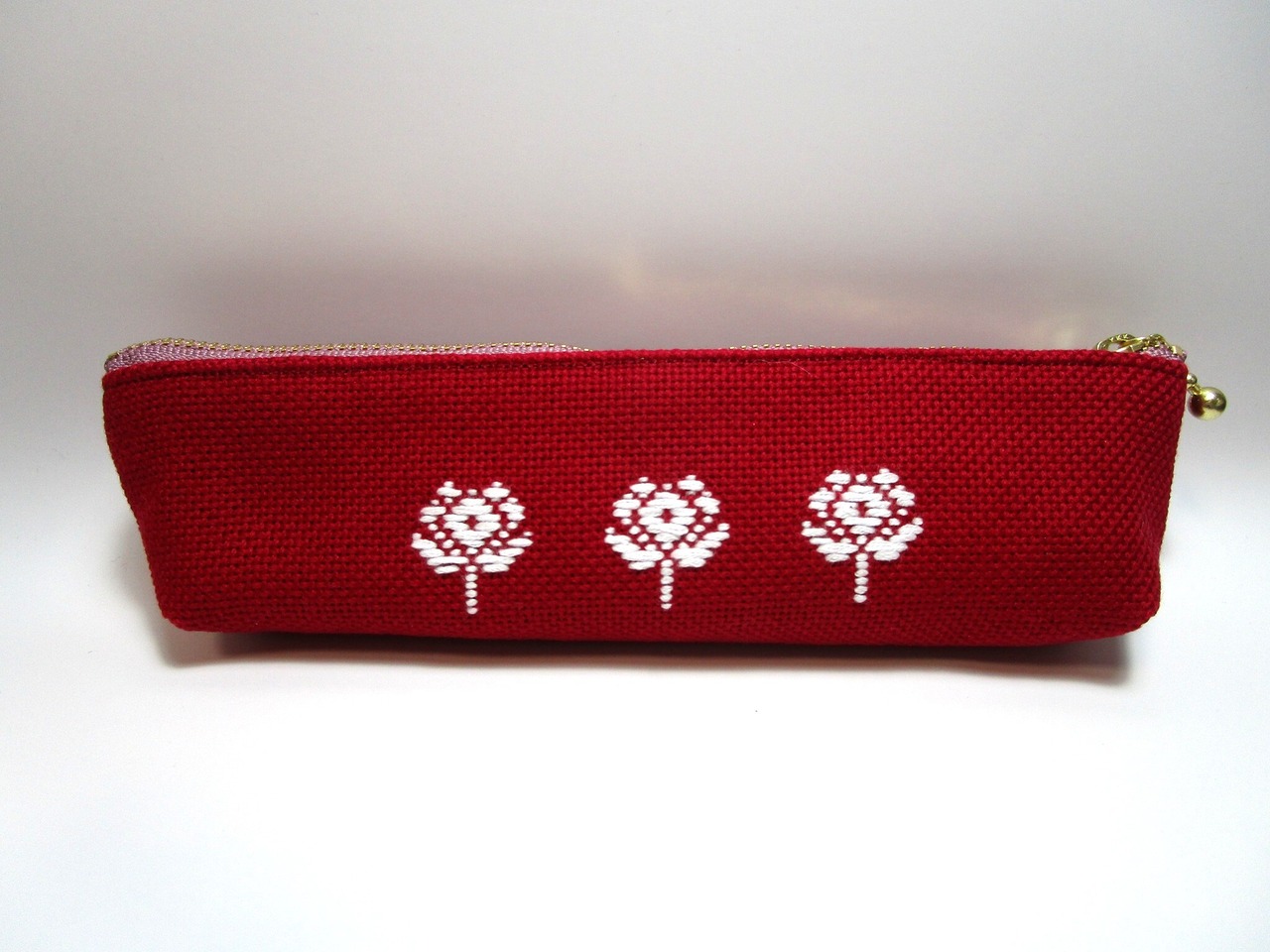 『こぎん刺し』✳️ひょうたん✳️ペンケース ・メガネケース◆ワインレッド*ホワイト◆