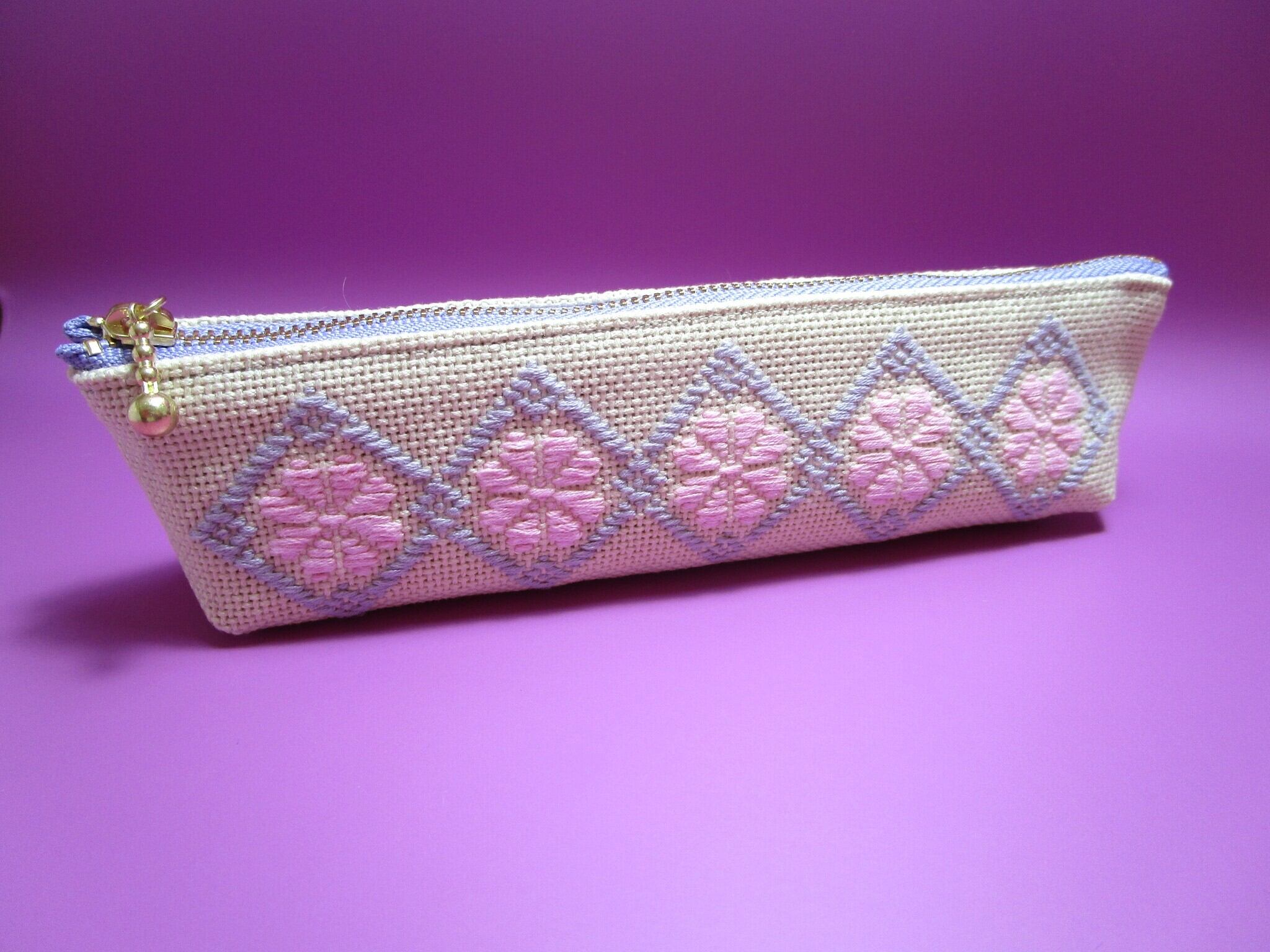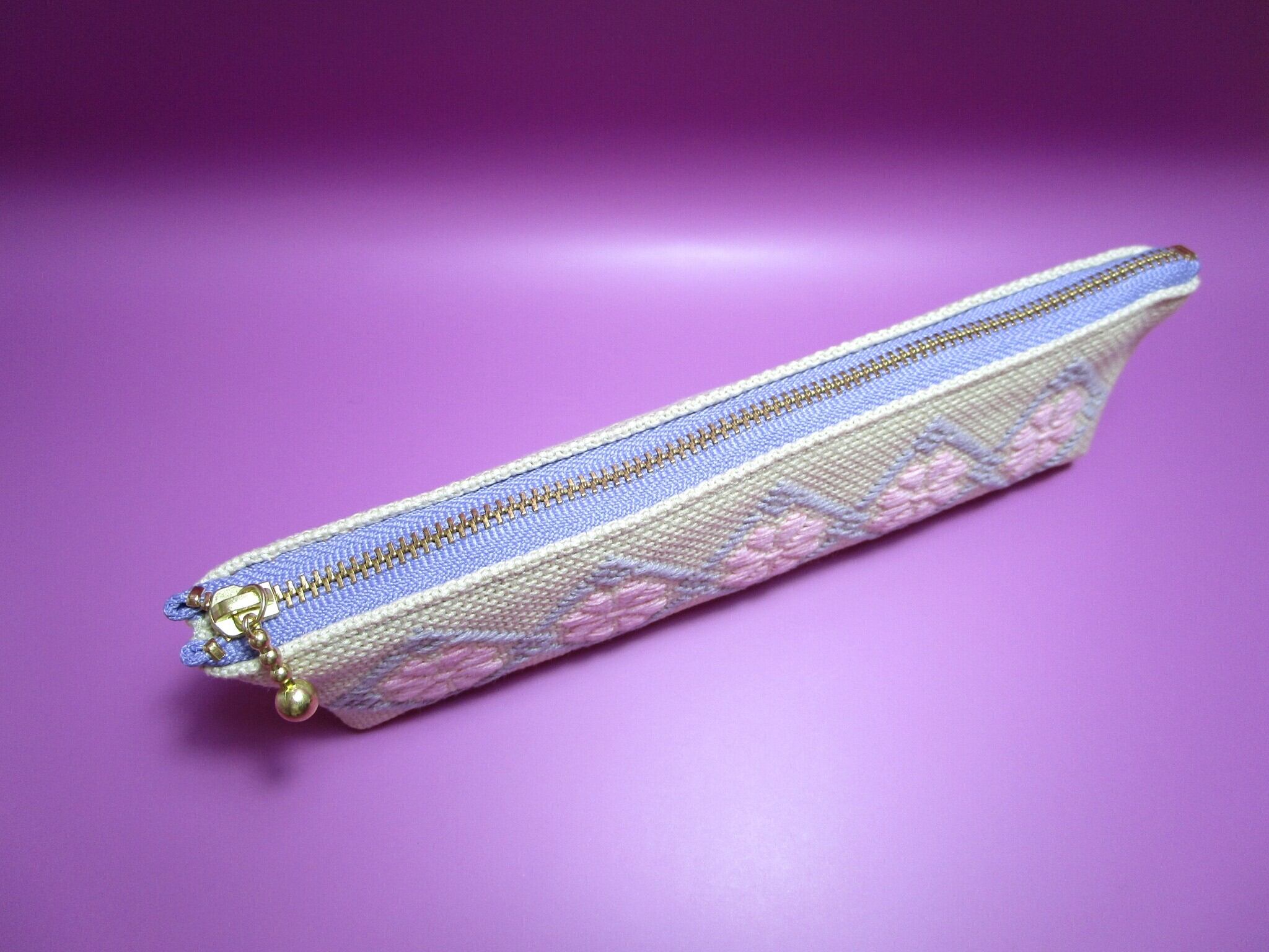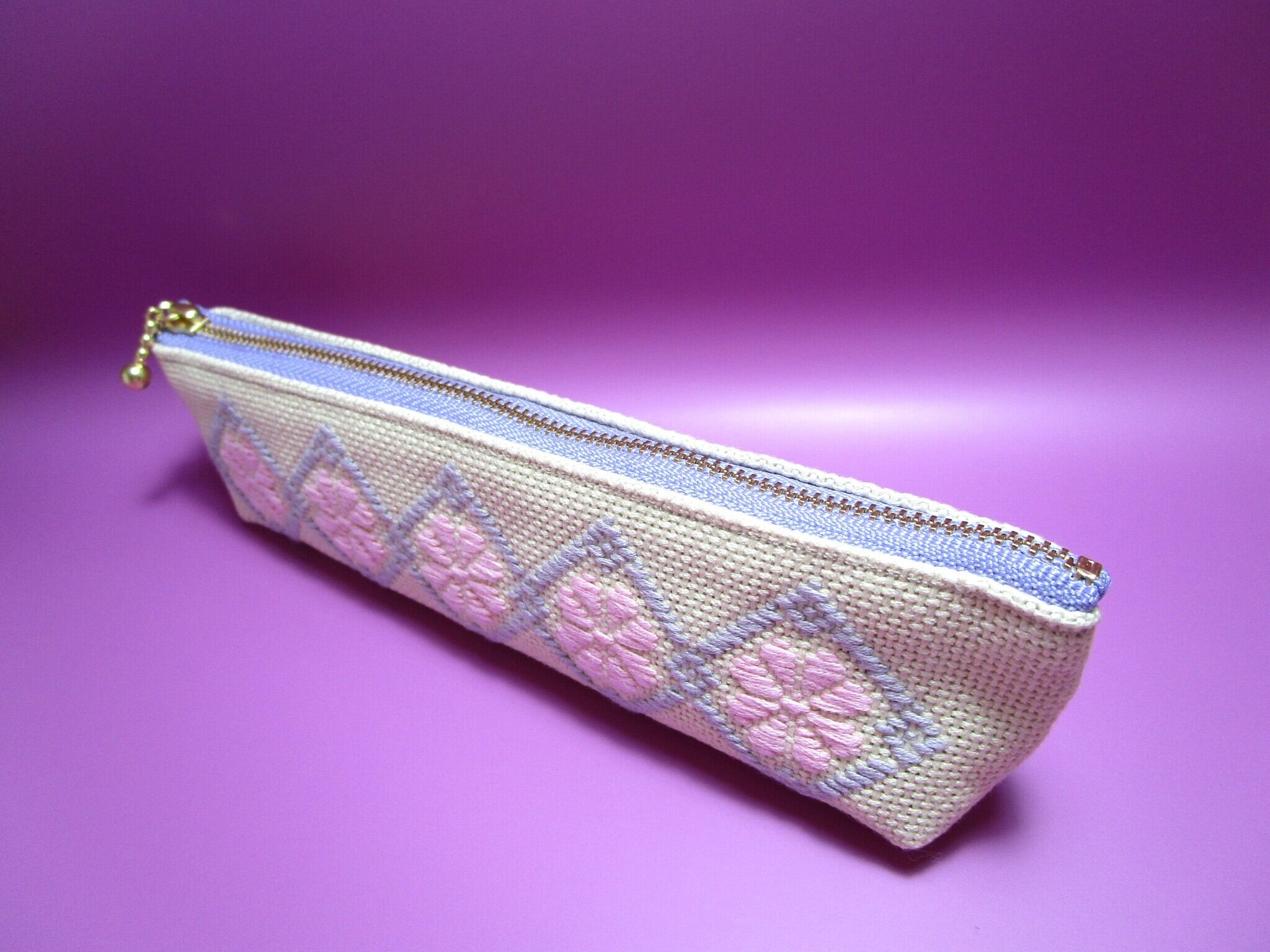 『こぎん刺し』✳️花飾り✳️ ペンケース・メガネケース ◆ベージュ*淡ピンク・薄藤色◆