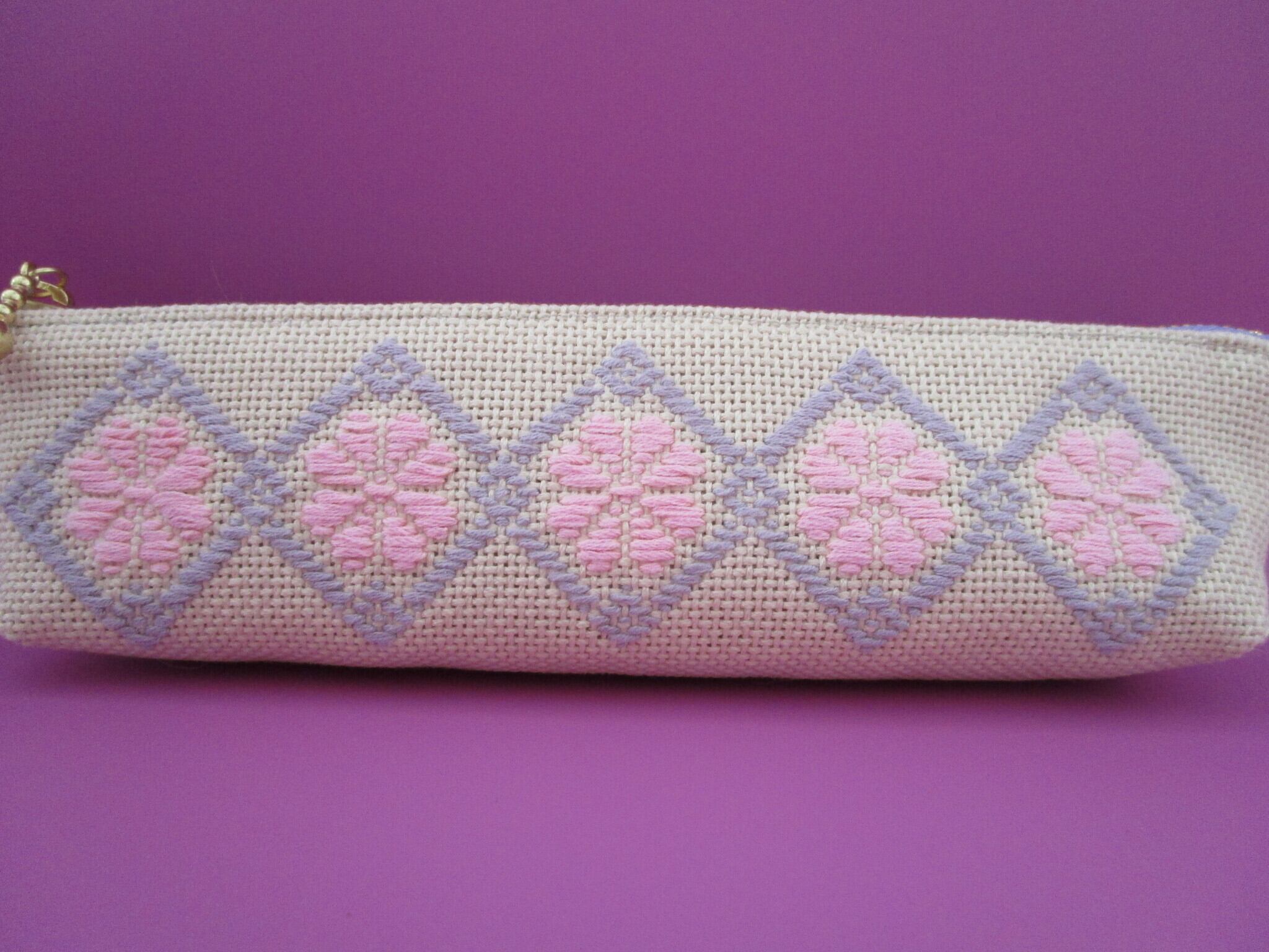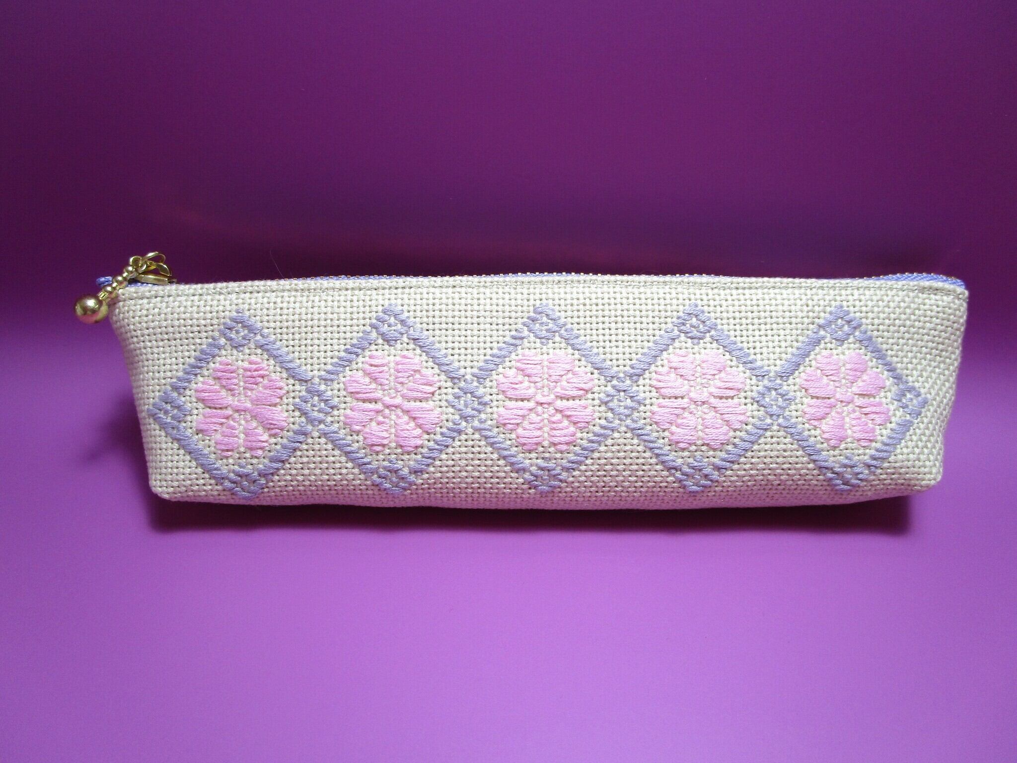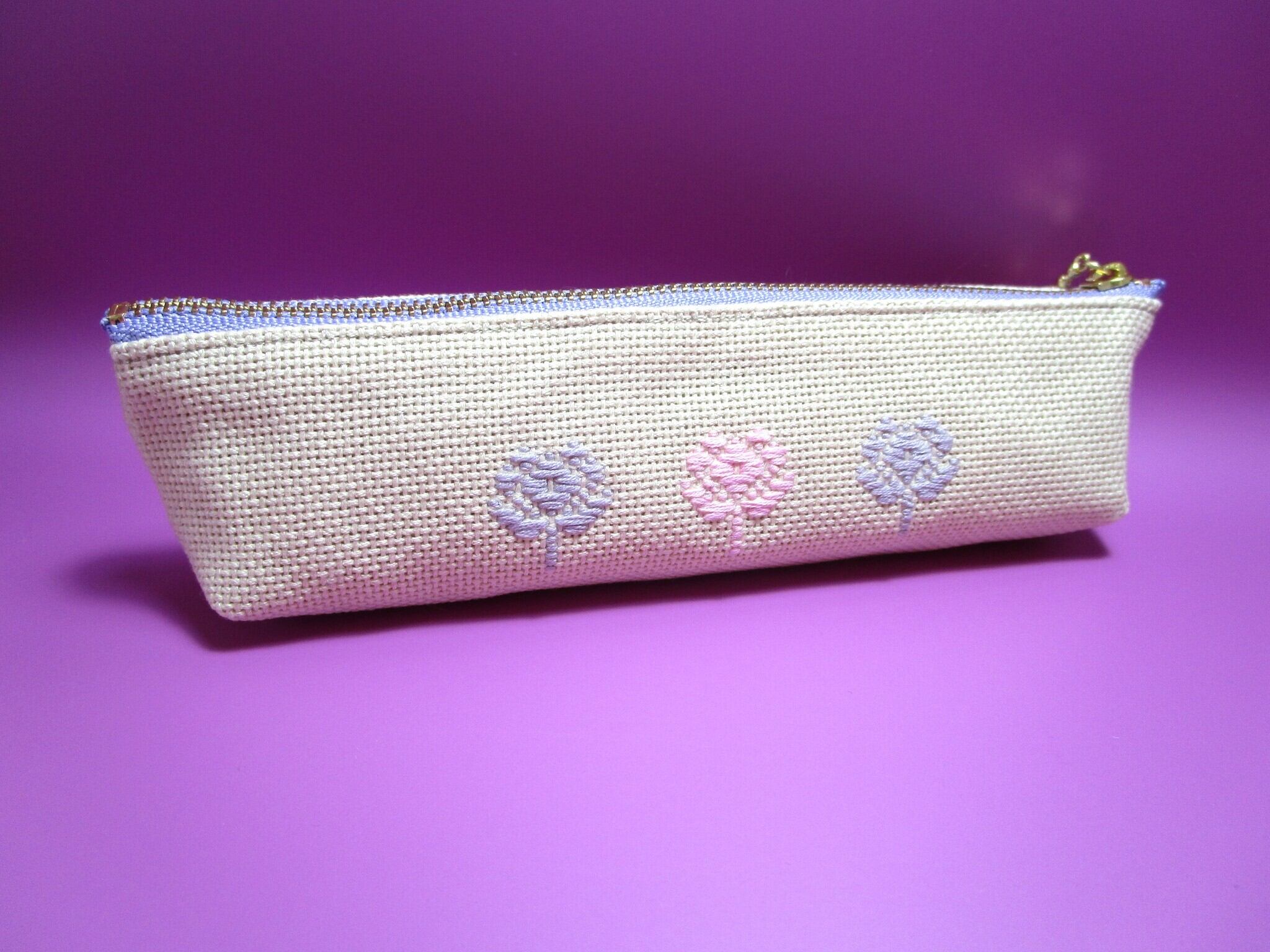 『こぎん刺し』✳️花飾り✳️ ペンケース・メガネケース ◆ベージュ*淡ピンク・薄藤色◆