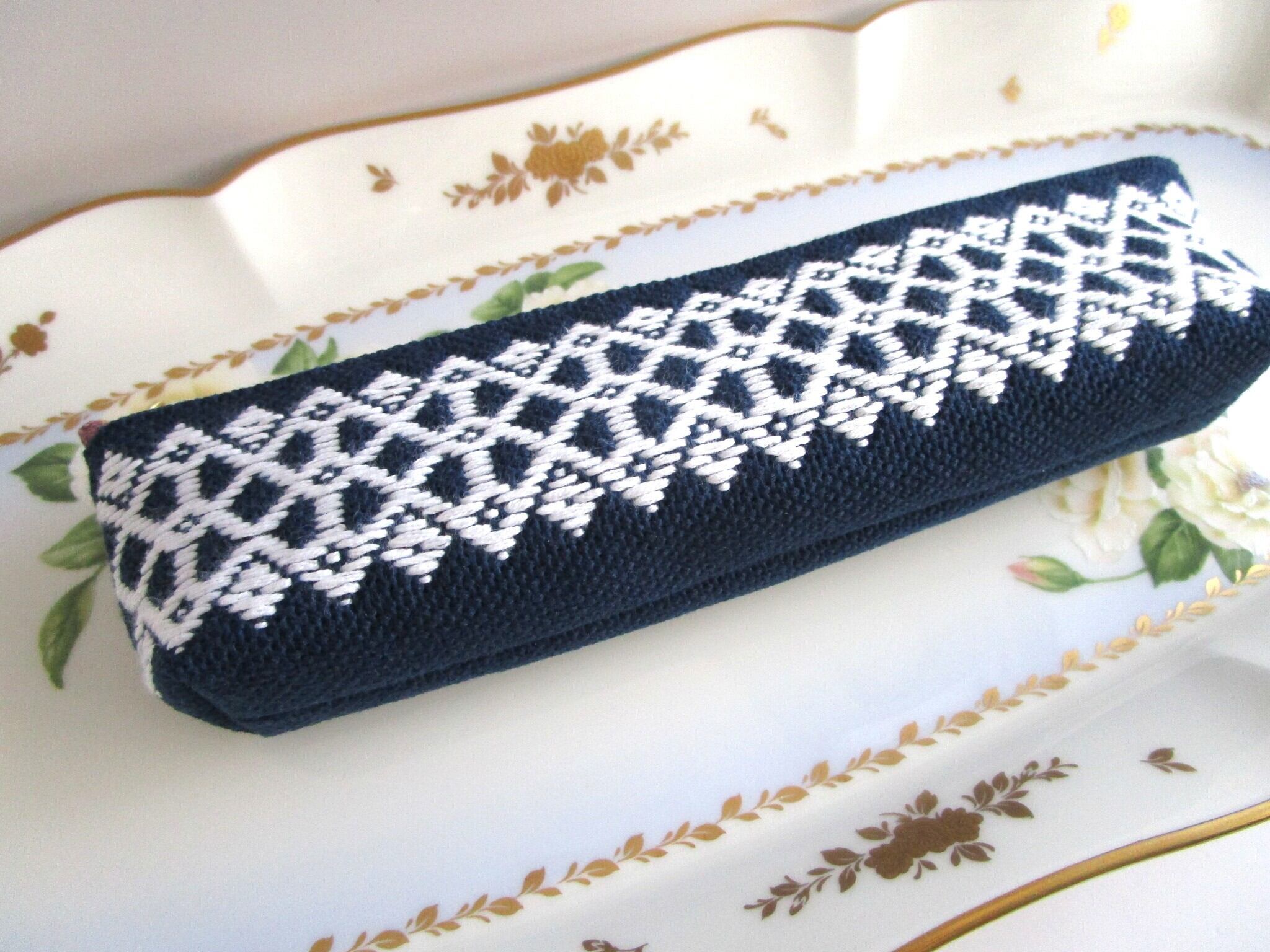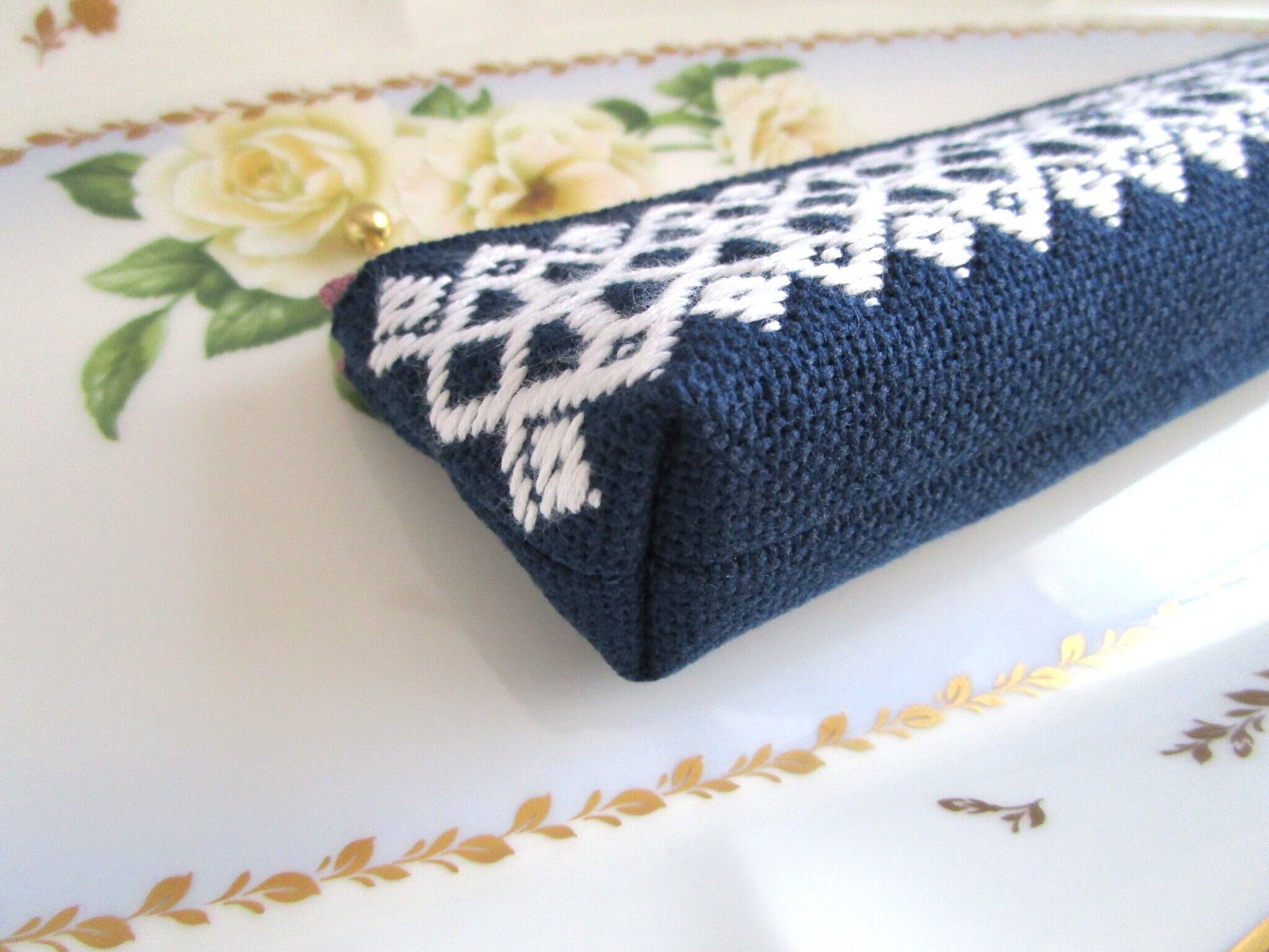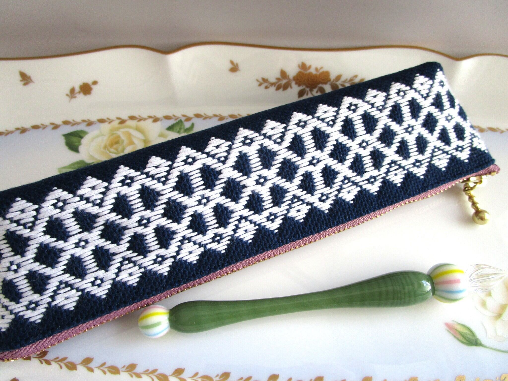 『こぎん刺し』✳️猫の足あと✳️ ペンケース・メガネケース ◆ネイビー*ホワイト◆