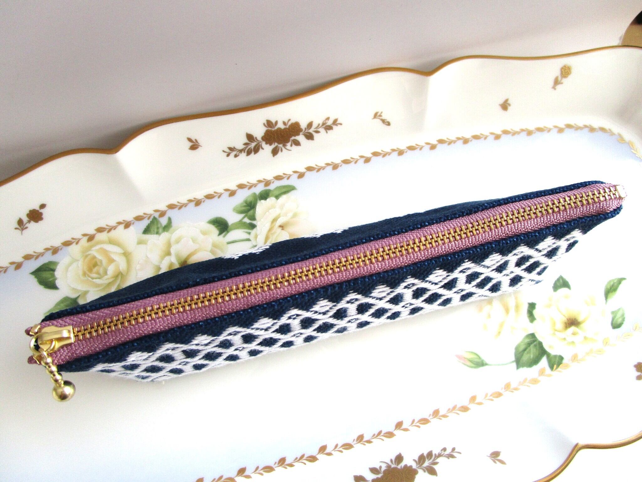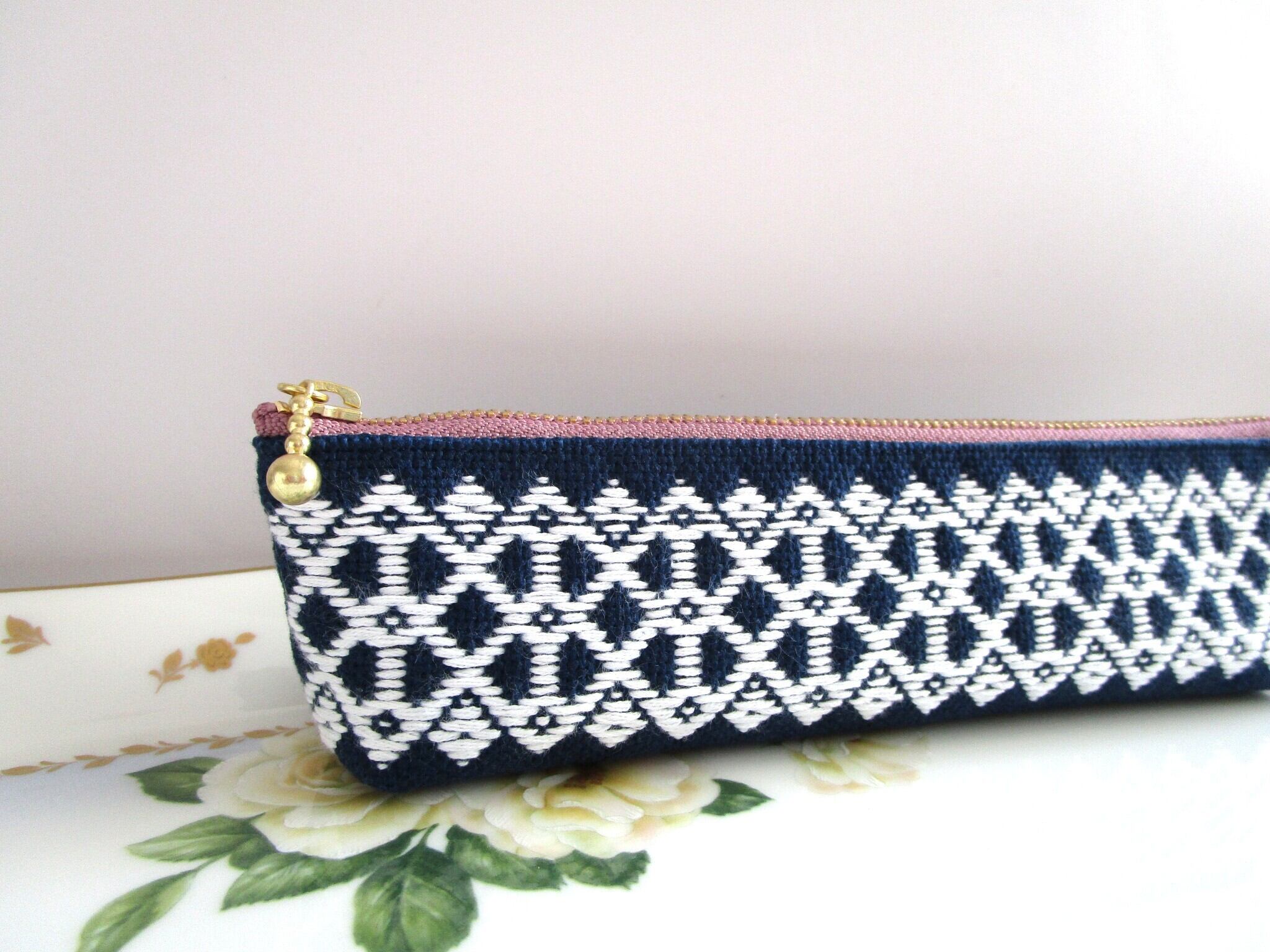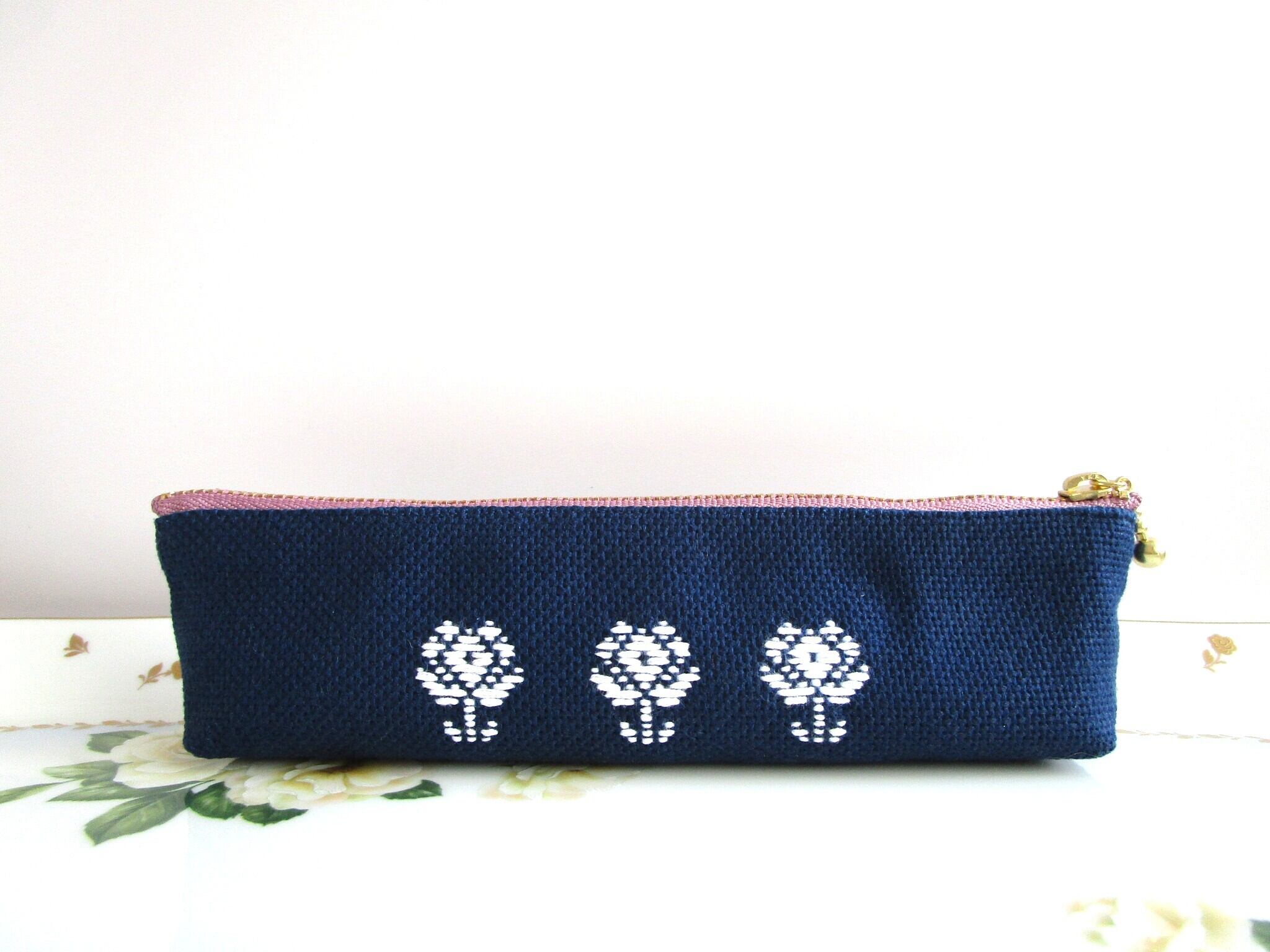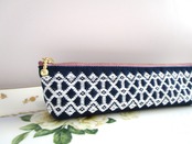 『こぎん刺し』✳️猫の足あと✳️ ペンケース・メガネケース ◆ネイビー*ホワイト◆
