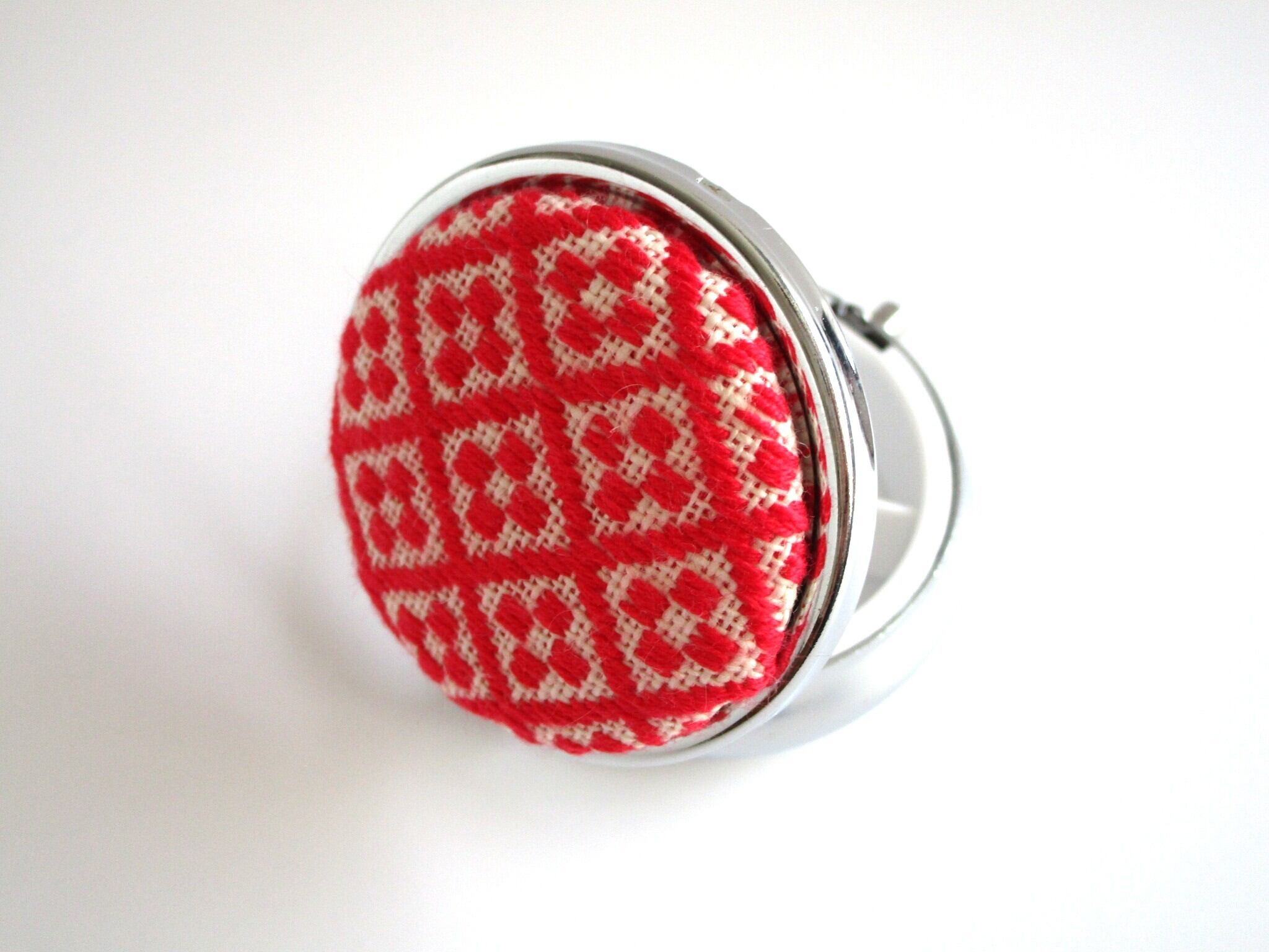 『こぎん刺し』✳️花十字✳️ アクセサリーケース・ピルケース ◆生成り*レッド◆