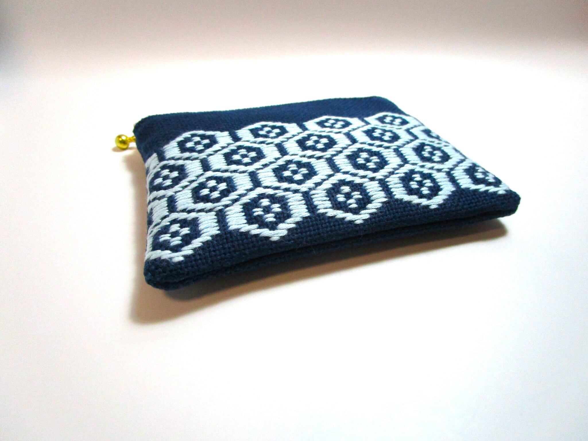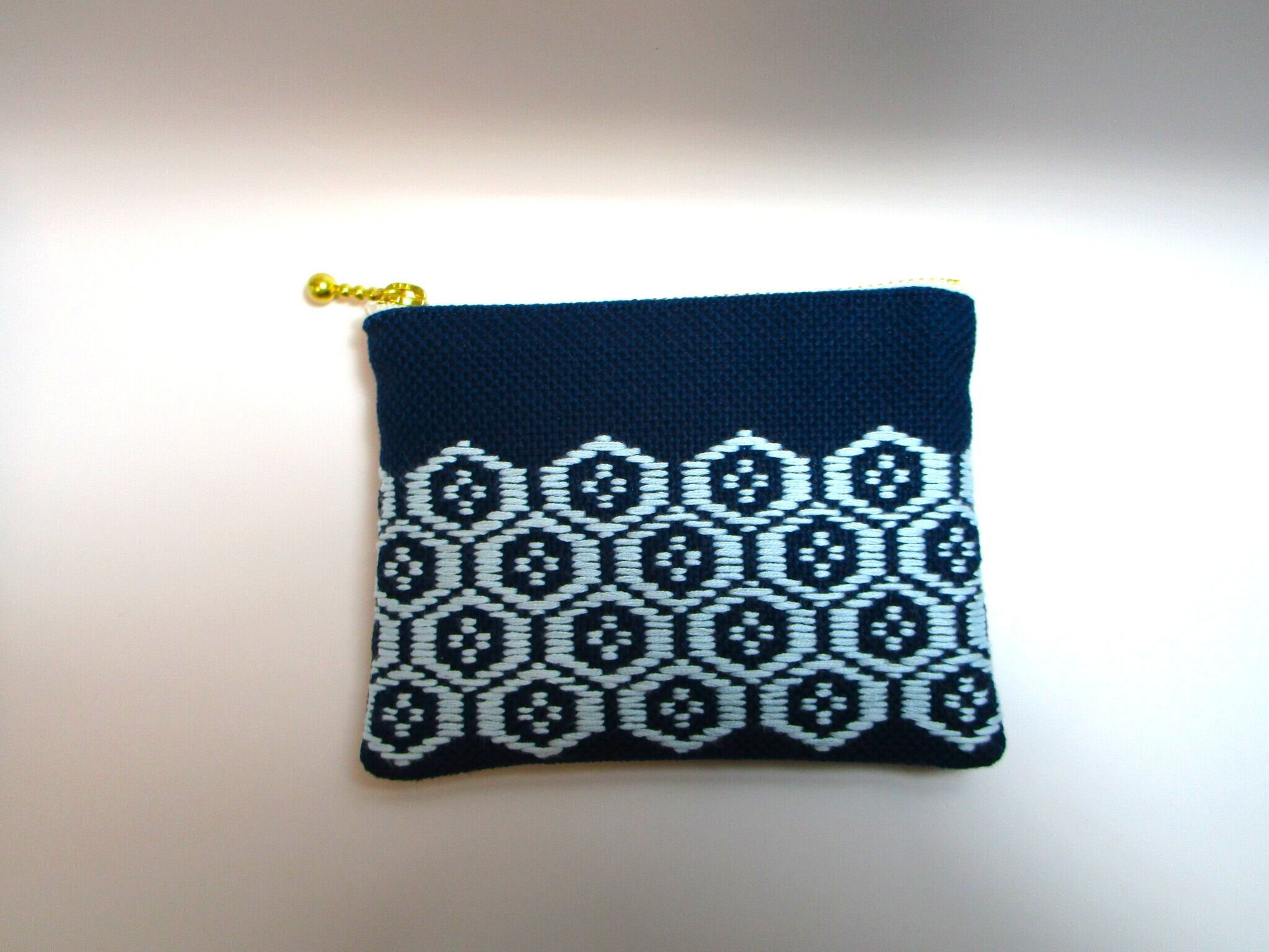 『こぎん刺し』✳️亀甲模様✳️ ファスナーポーチ ◆紺色*水色◆