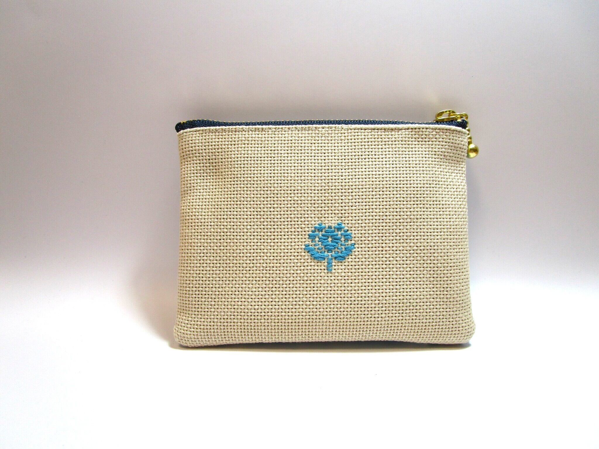 『こぎん刺し』 ✳️花つなぎ✳️ファスナーポーチ ◆ベージュ*ターコイズ&ネイビー◆