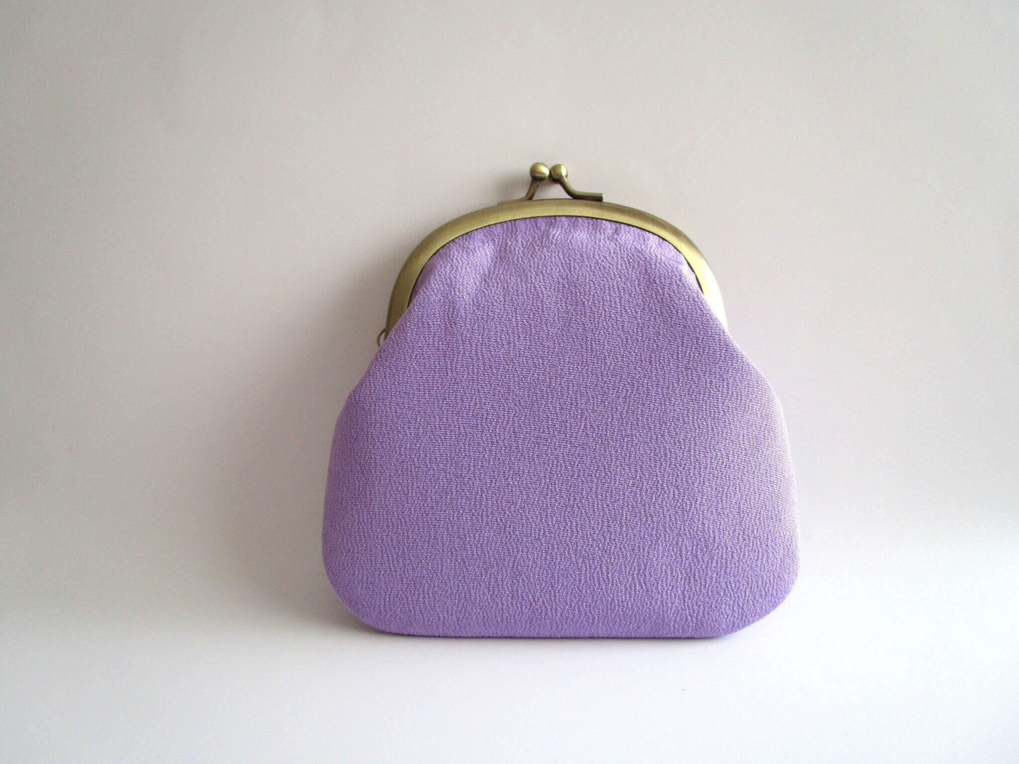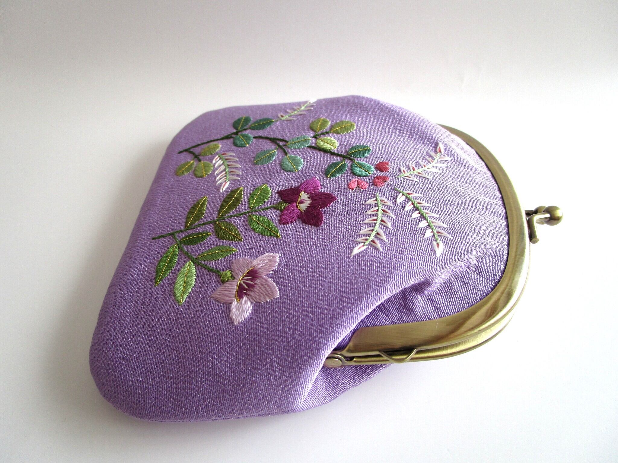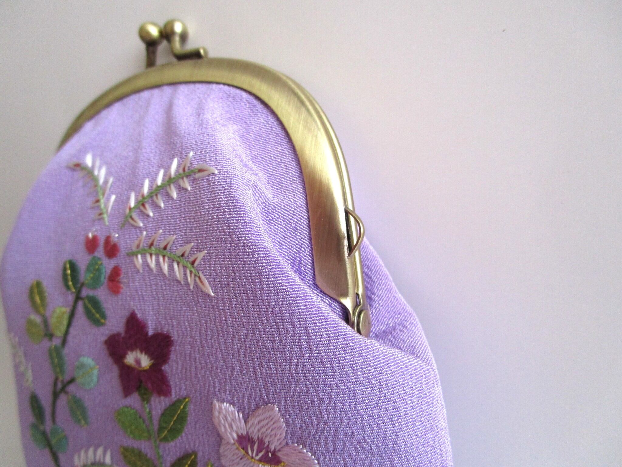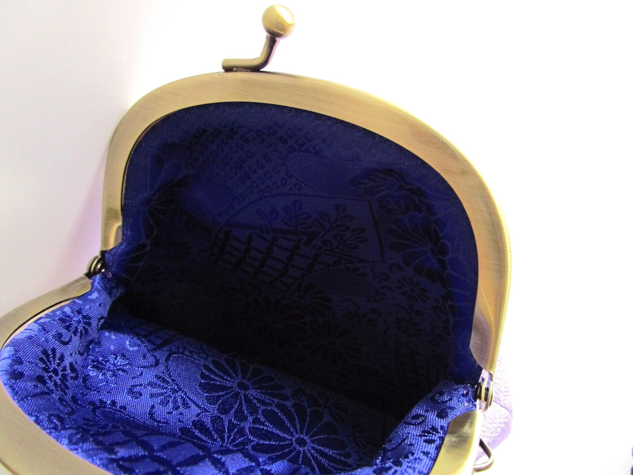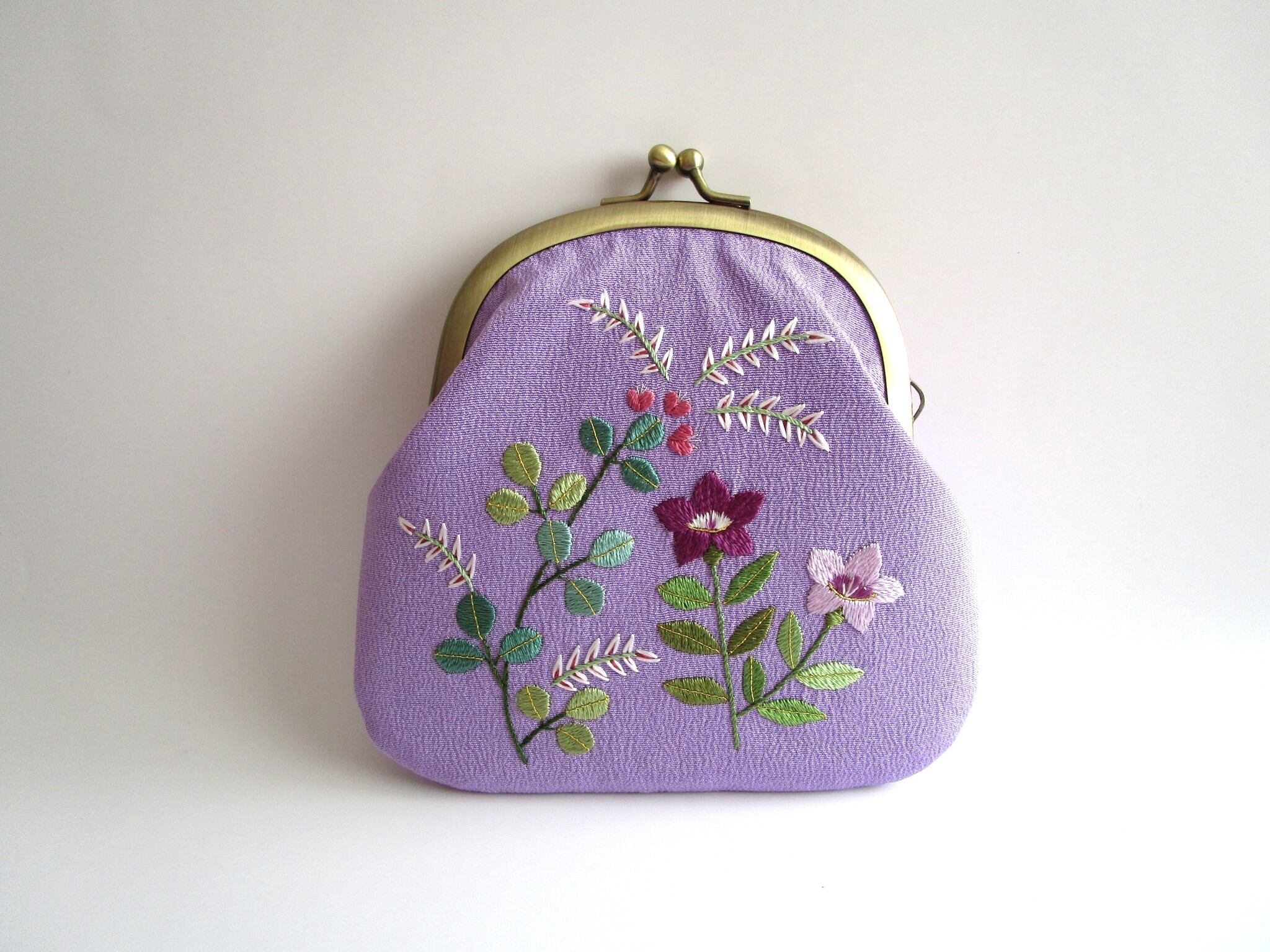 『日本刺繡 』*桔梗と萩*がま口ポーチ・化粧ポーチ◆ラベンダー*紫◆