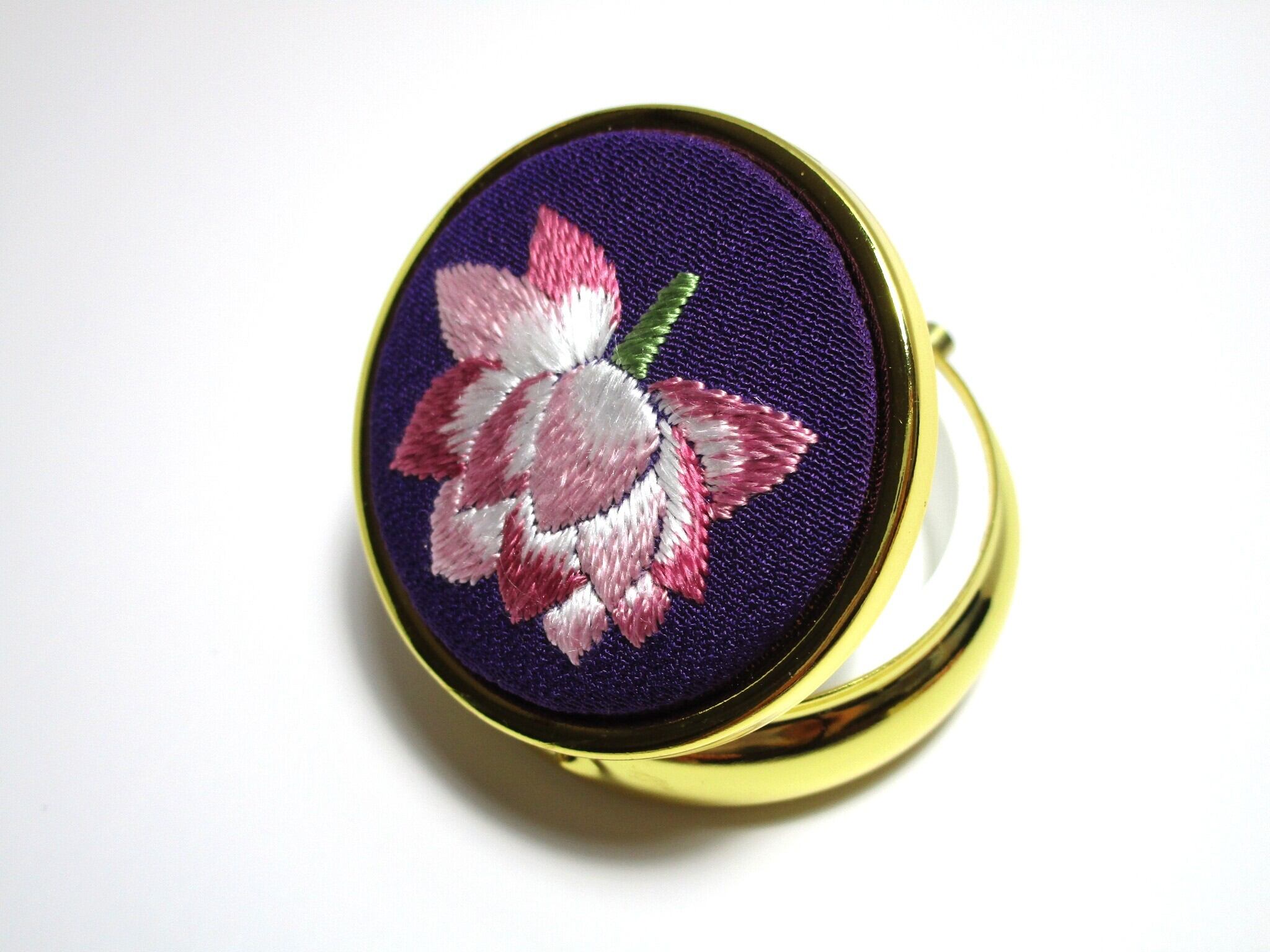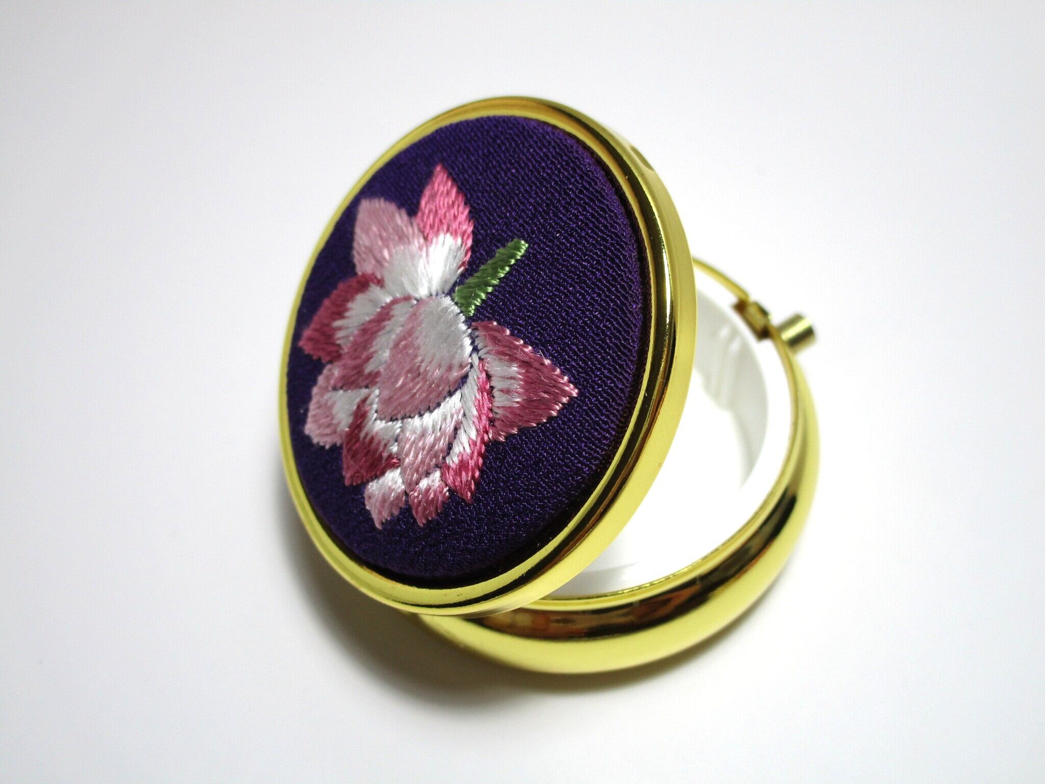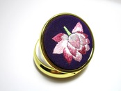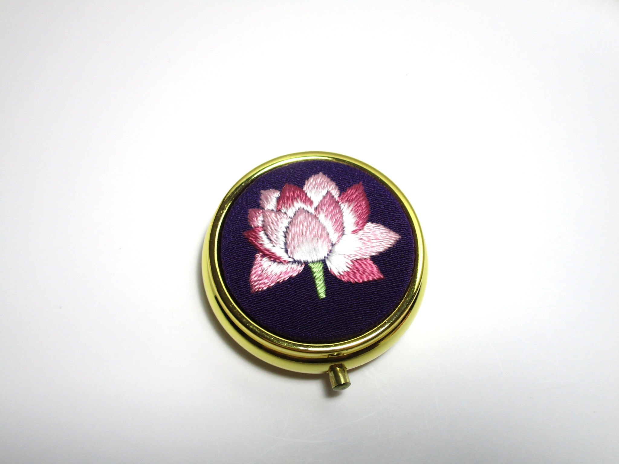 日本刺繡の技術を活かした『蓮の花』デザインのアクセサリーケース(ミラー付き)です。