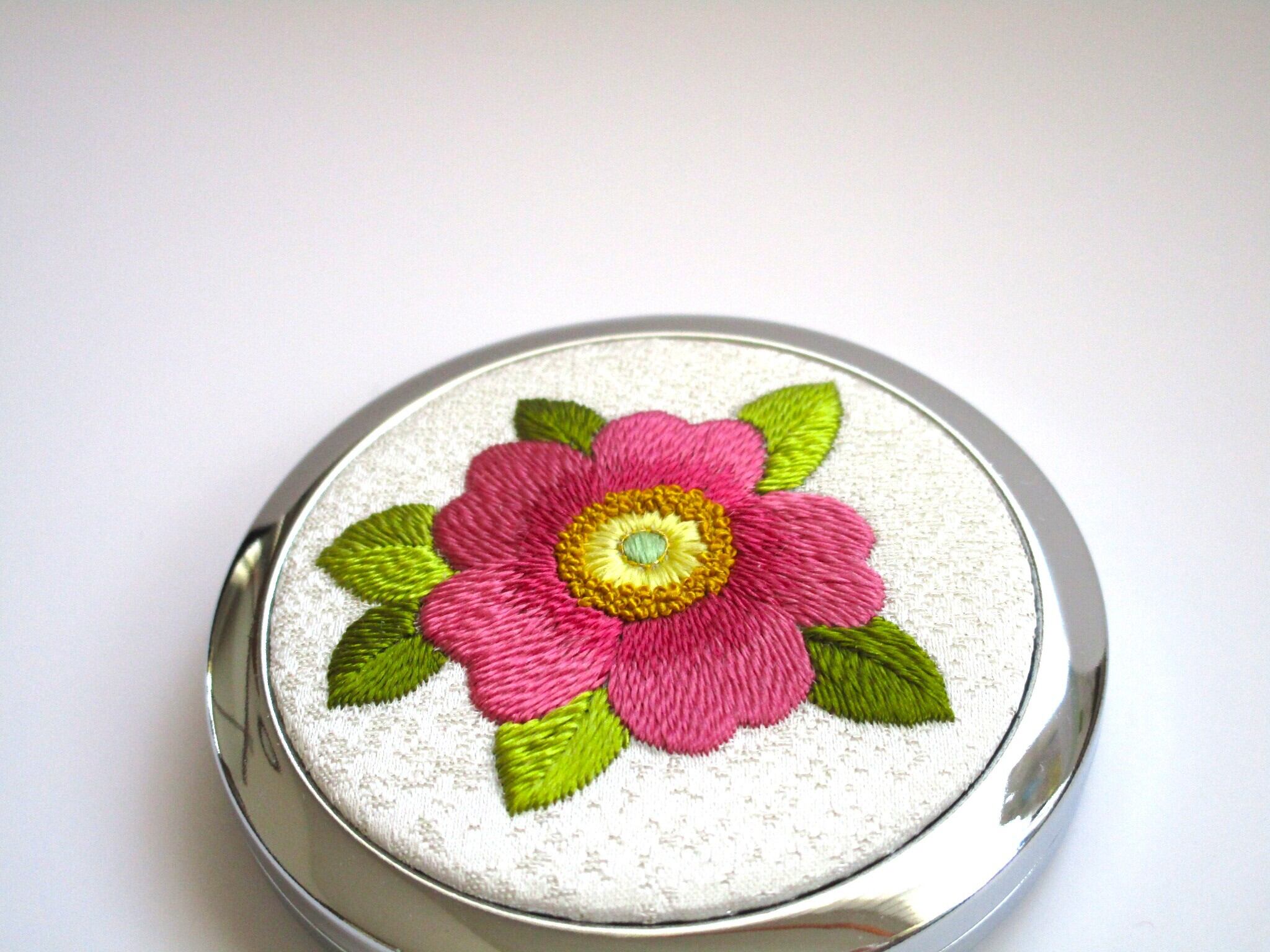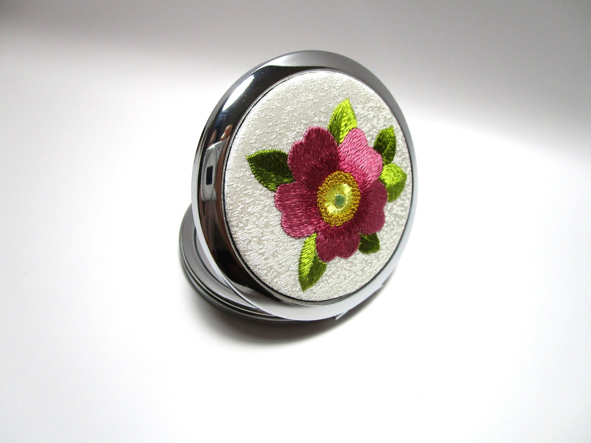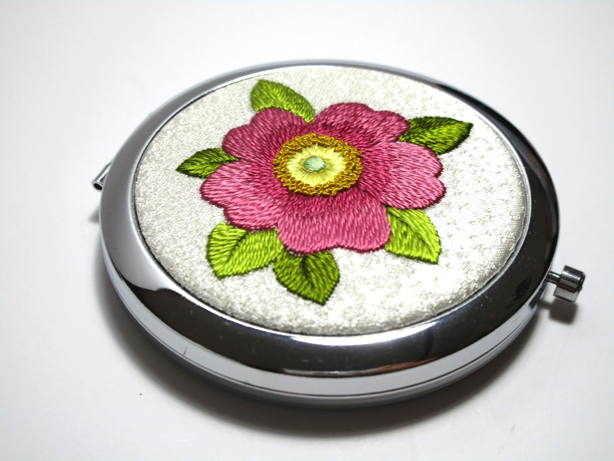 日本刺繡の技術を活かした『薔薇』デザインのコンパクトミラーです。