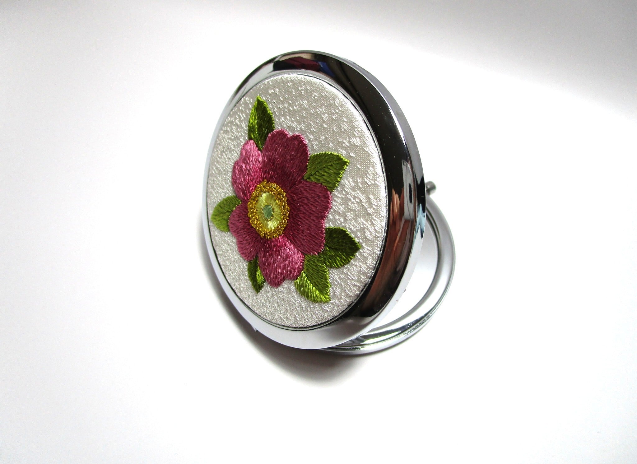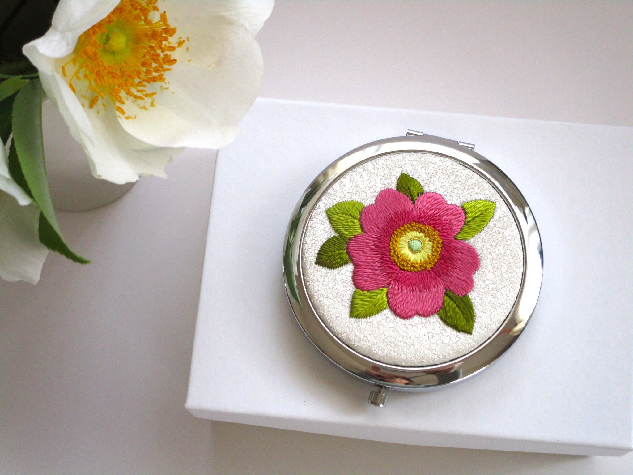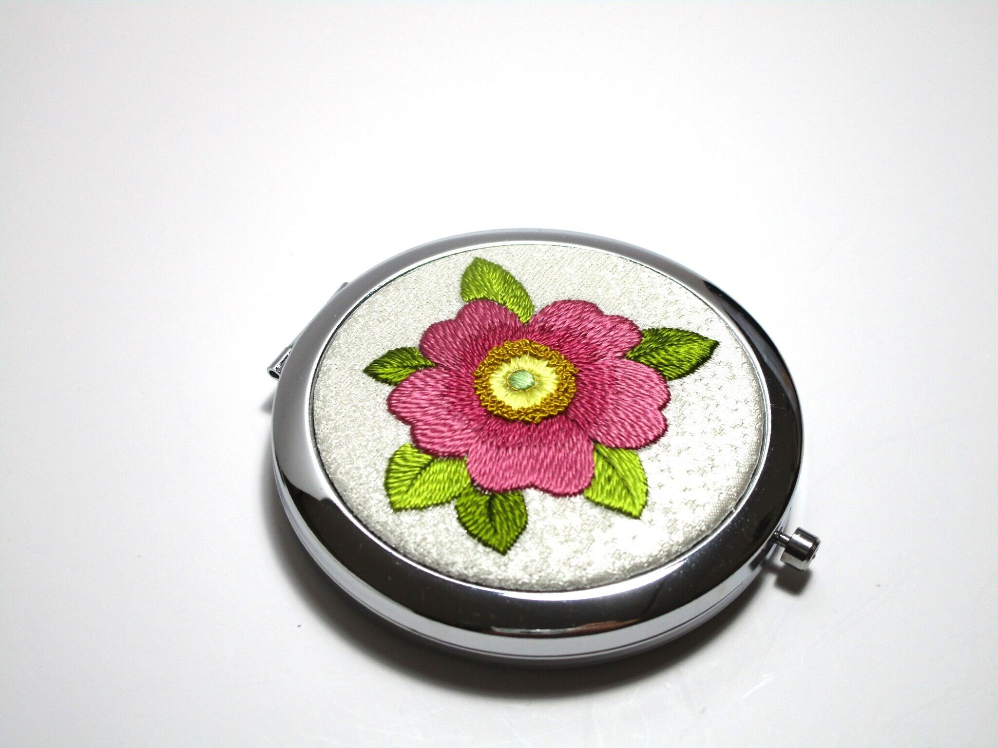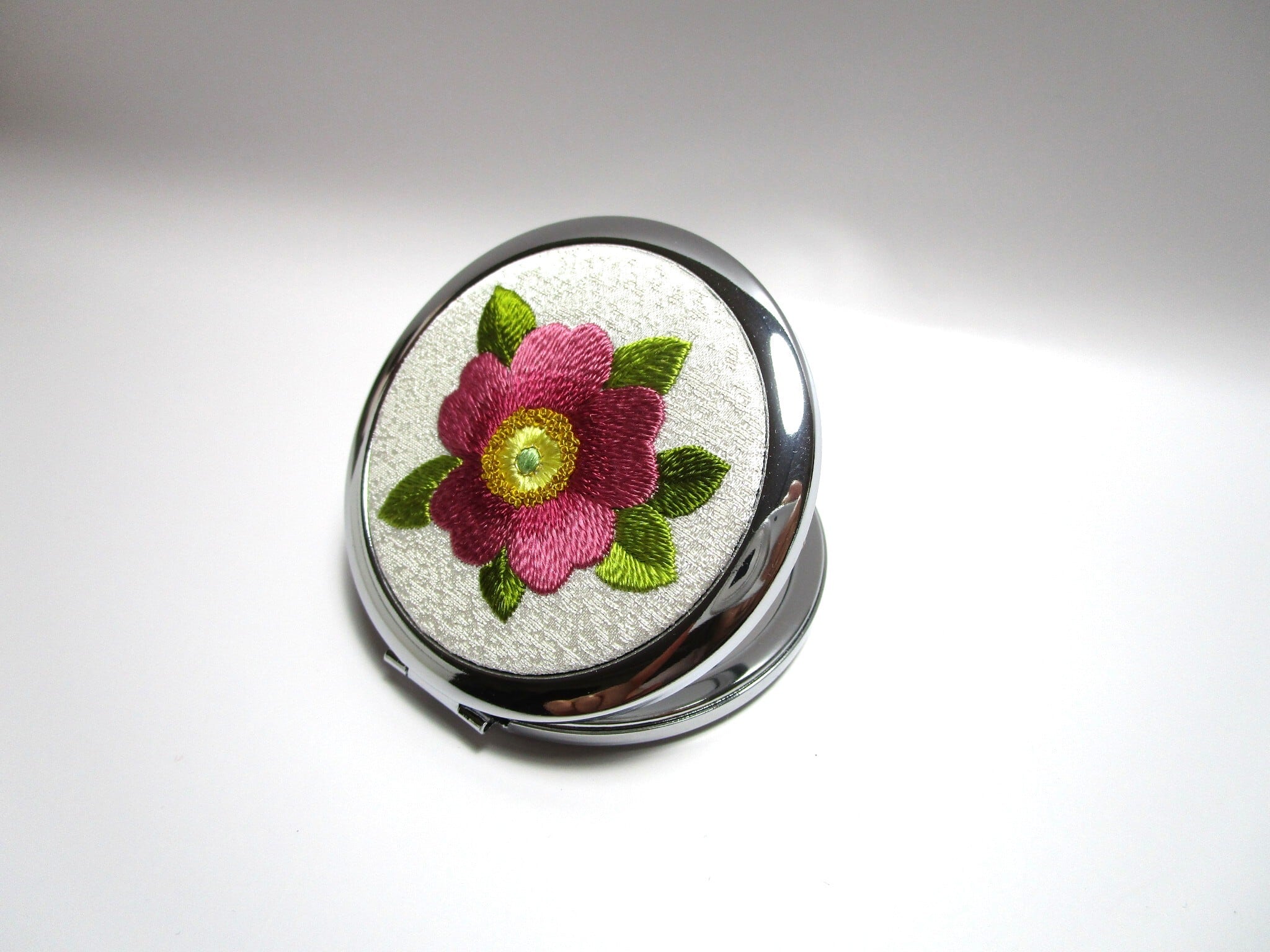 日本刺繡の技術を活かした『薔薇』デザインのコンパクトミラーです。