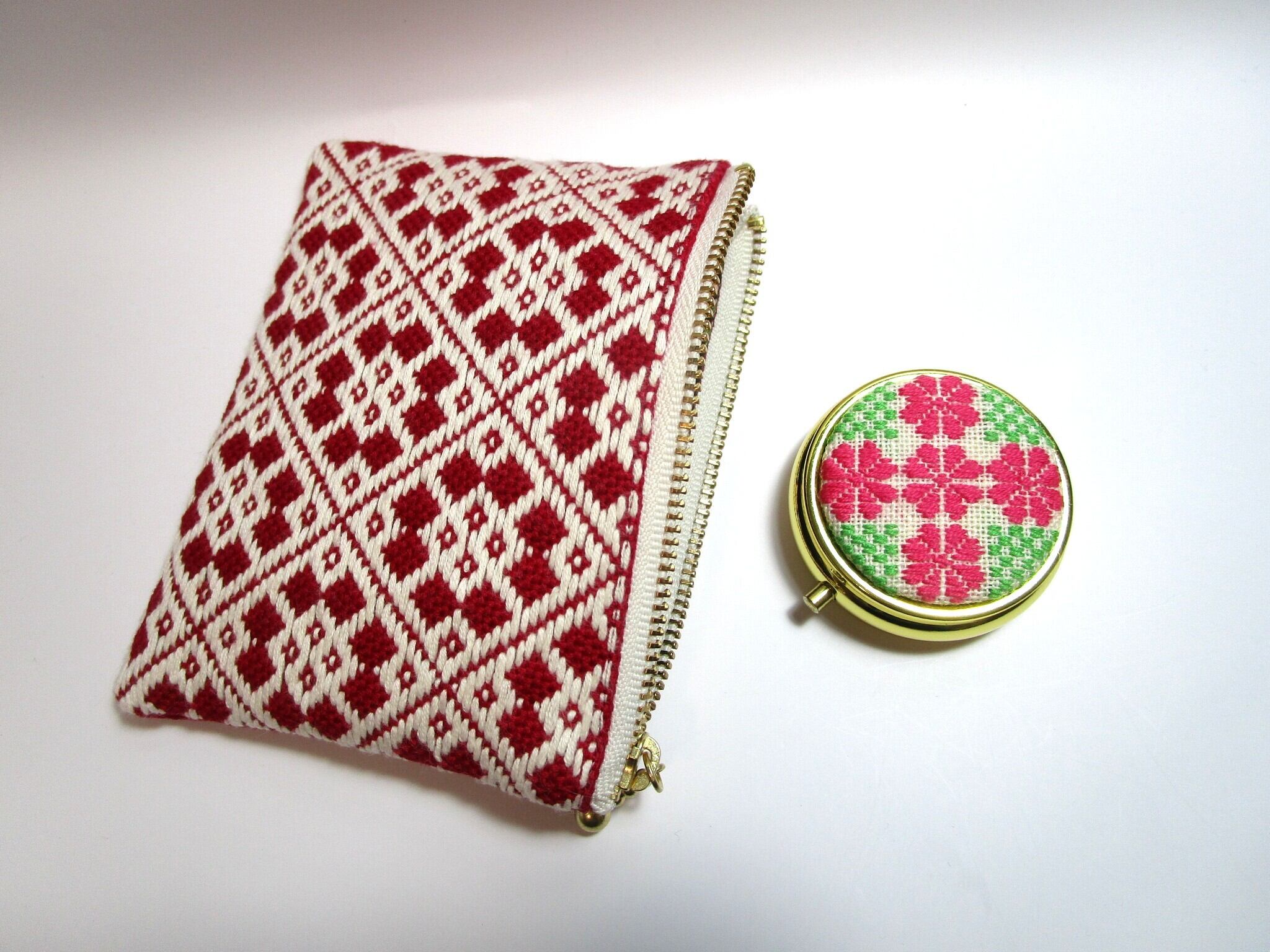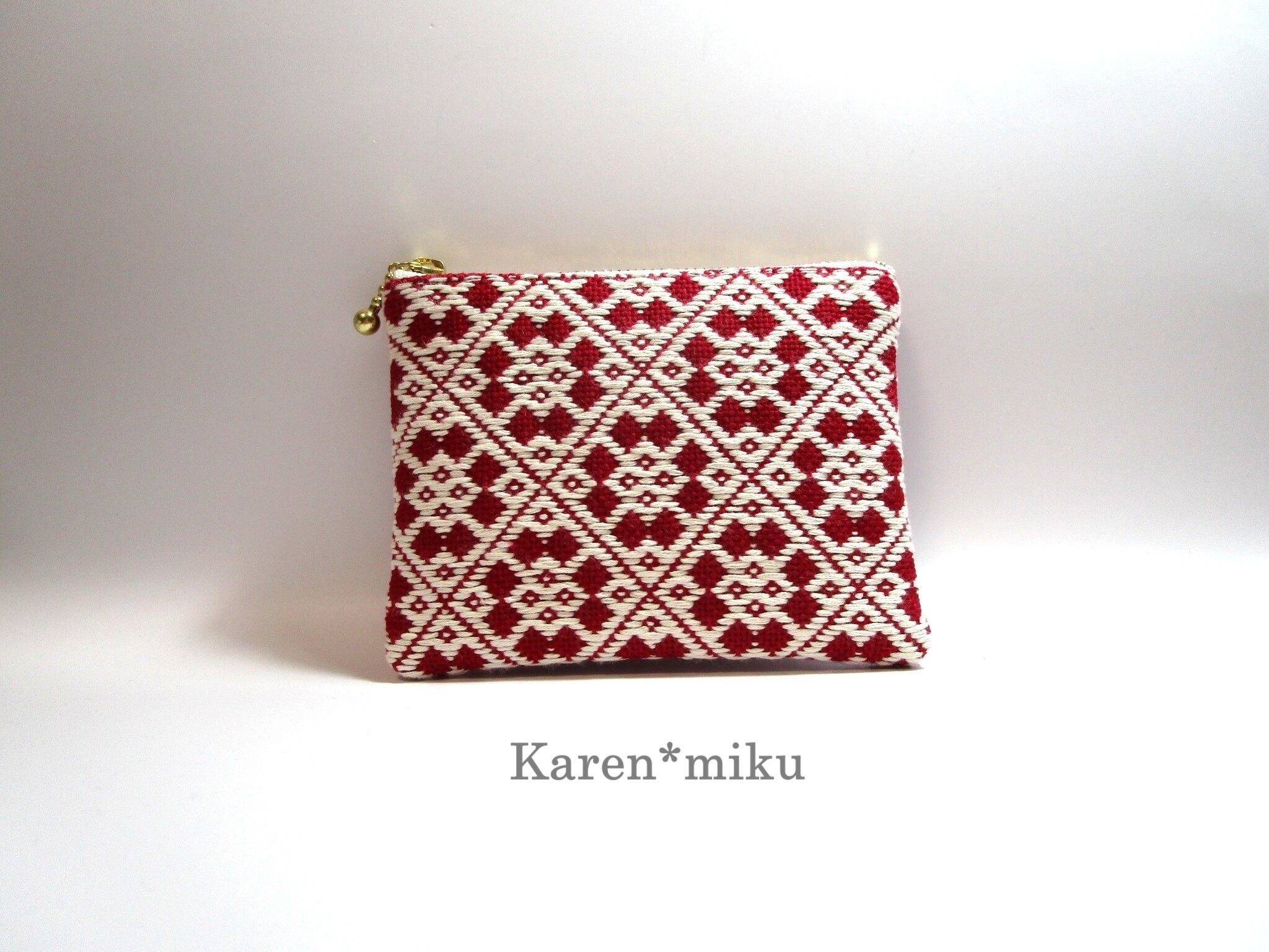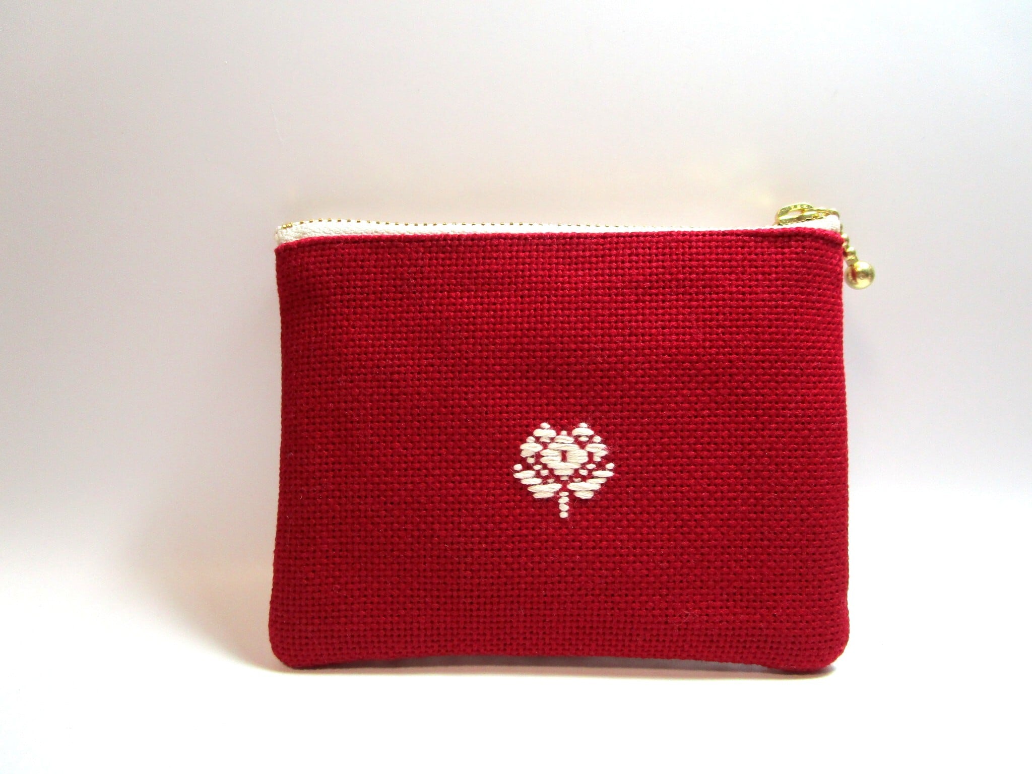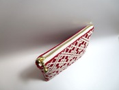 『こぎん刺し』 ✳️花つなぎ✳️ファスナーポーチ ◆ワインレッド*オフホワイト◆