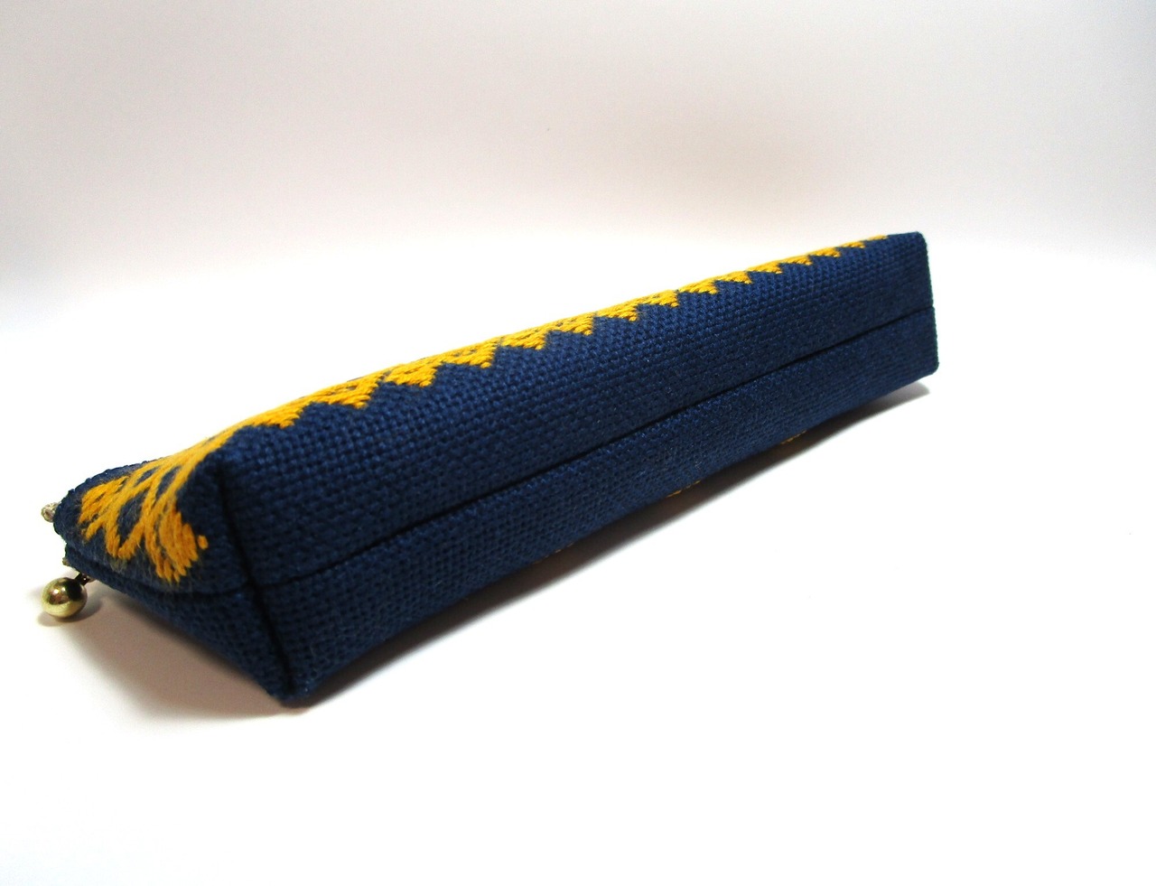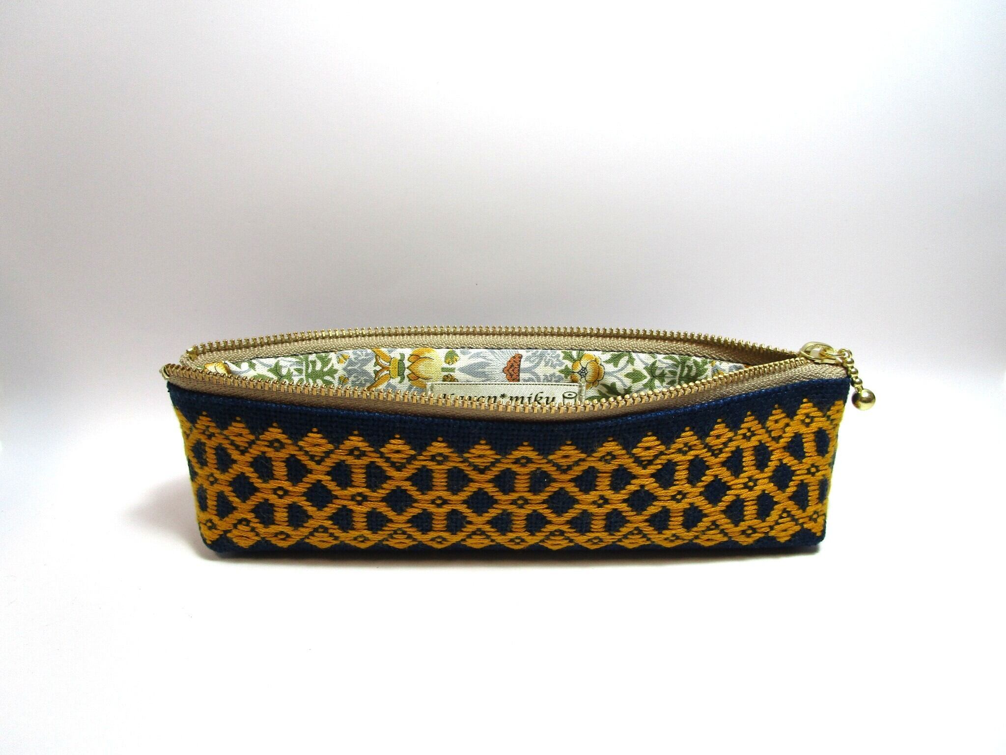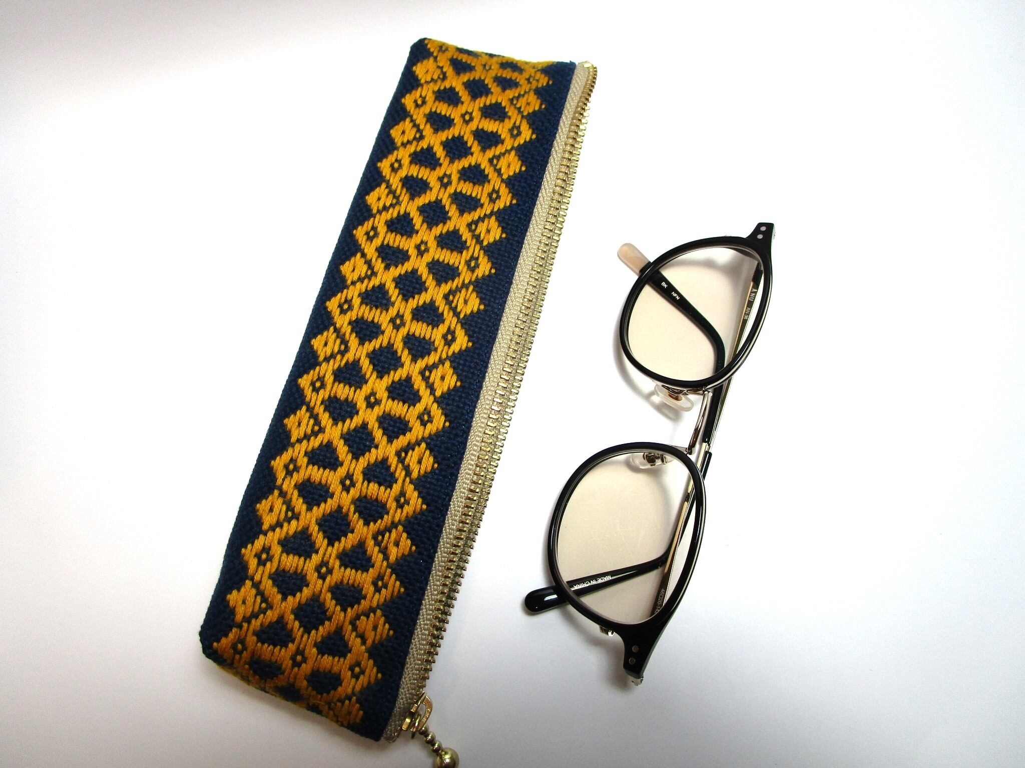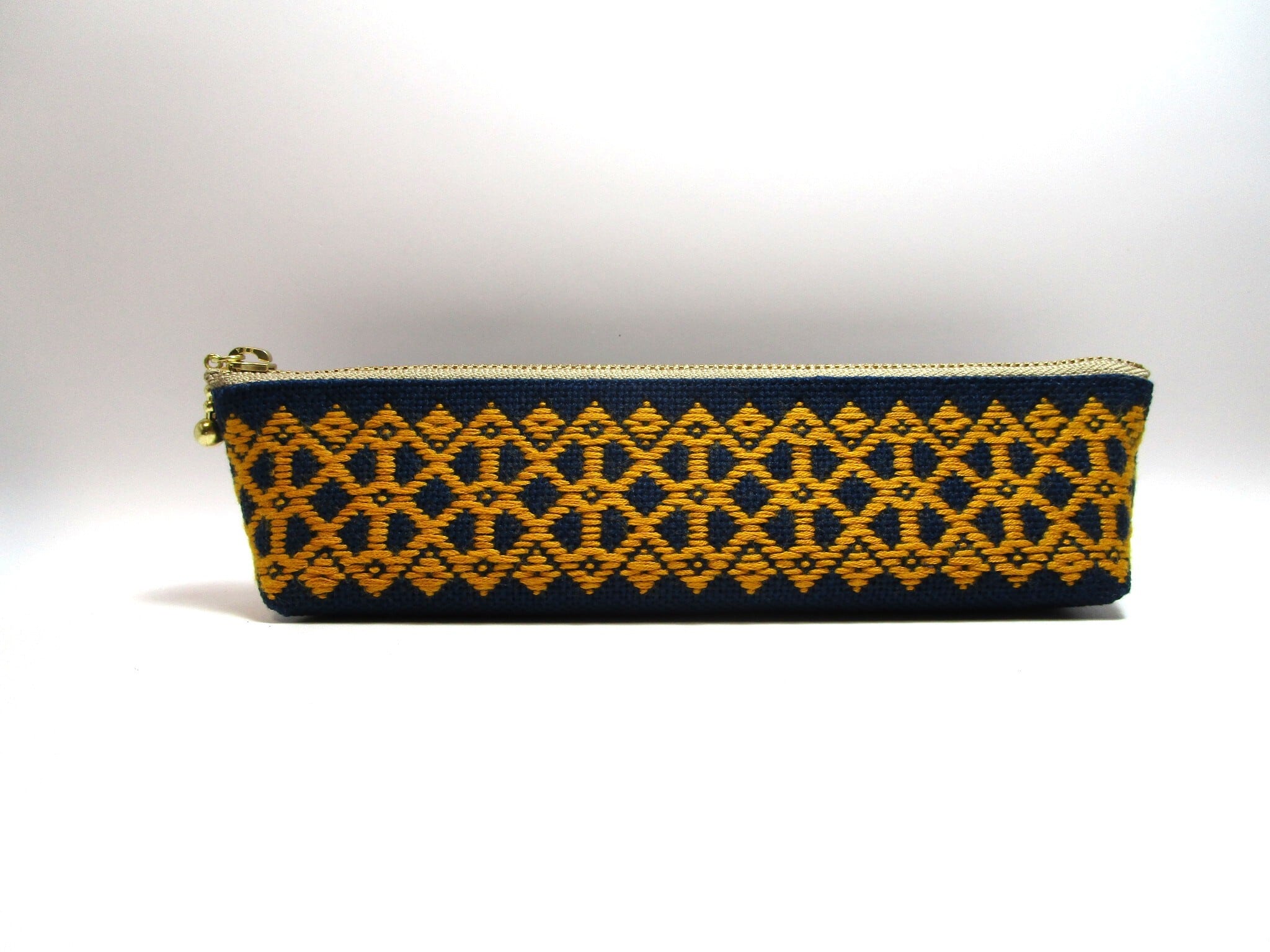 『こぎん刺し』✳️猫の足あと✳️ペンケース・メガネケース ◆ネイビー×山吹色◆