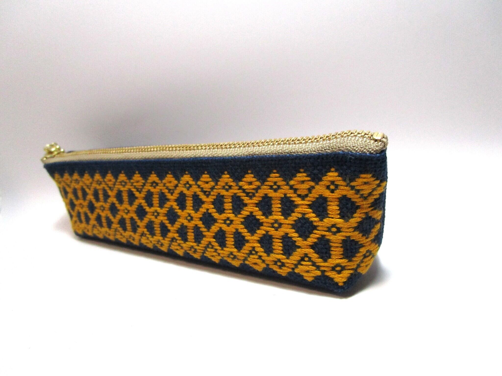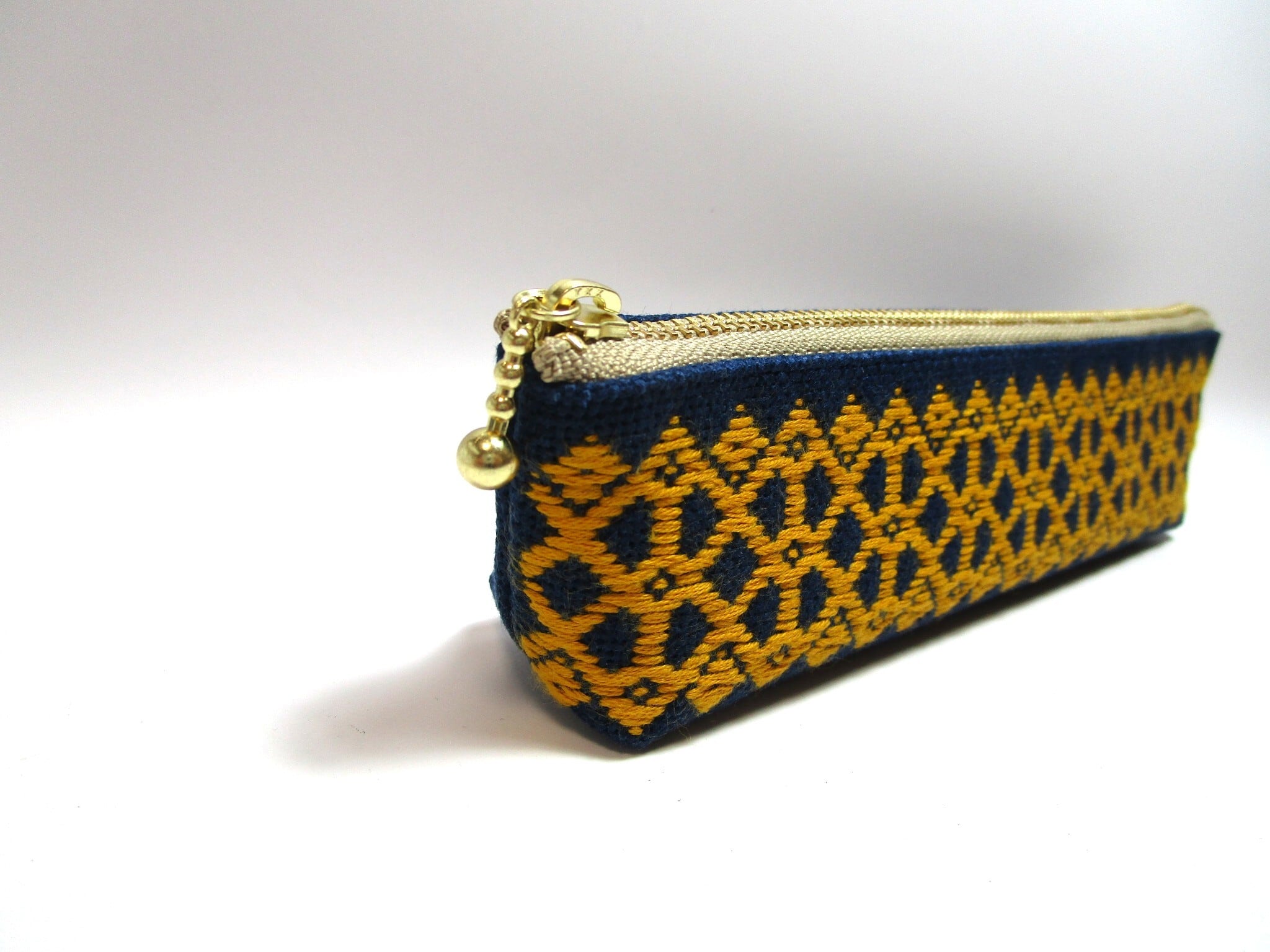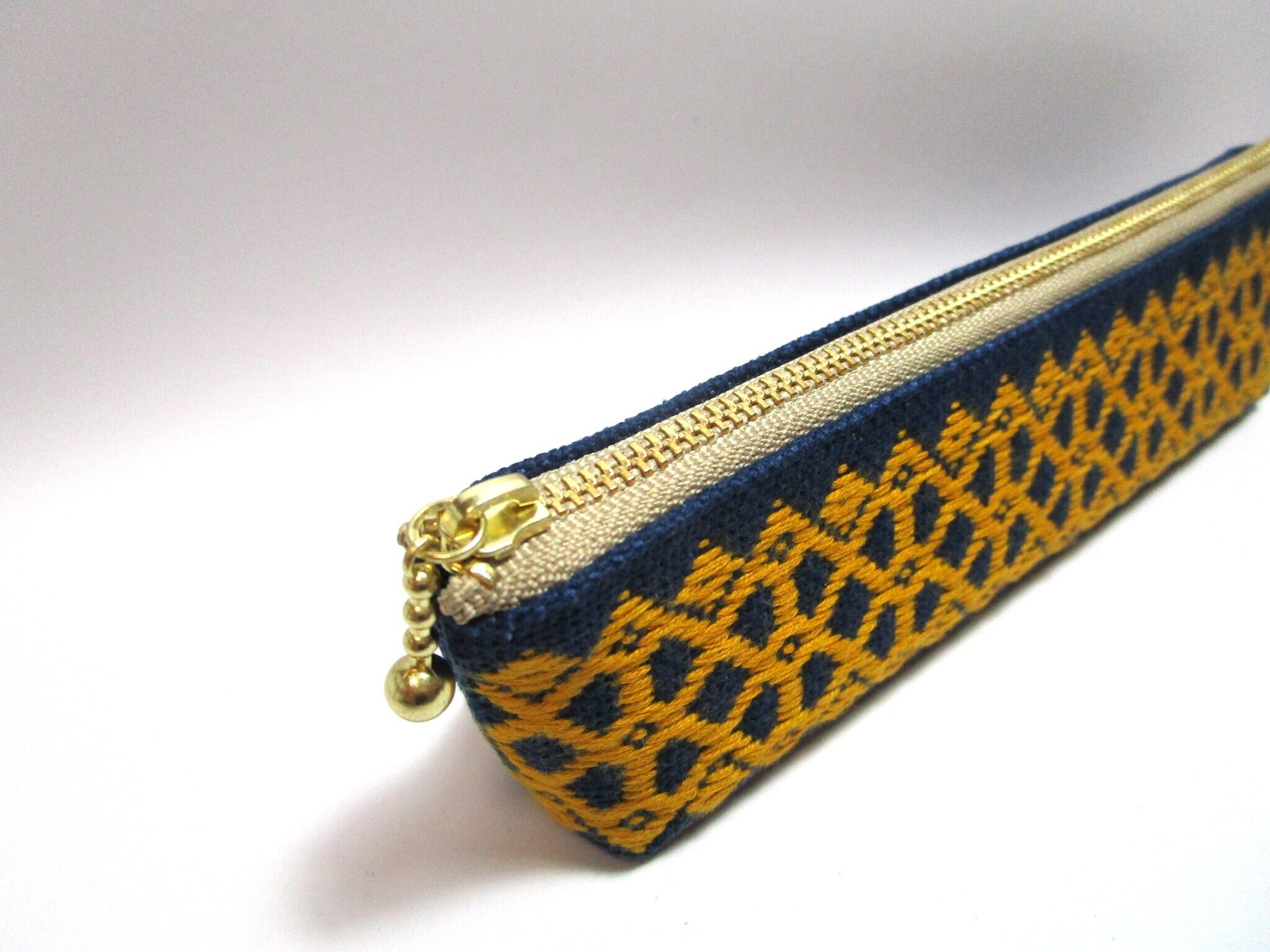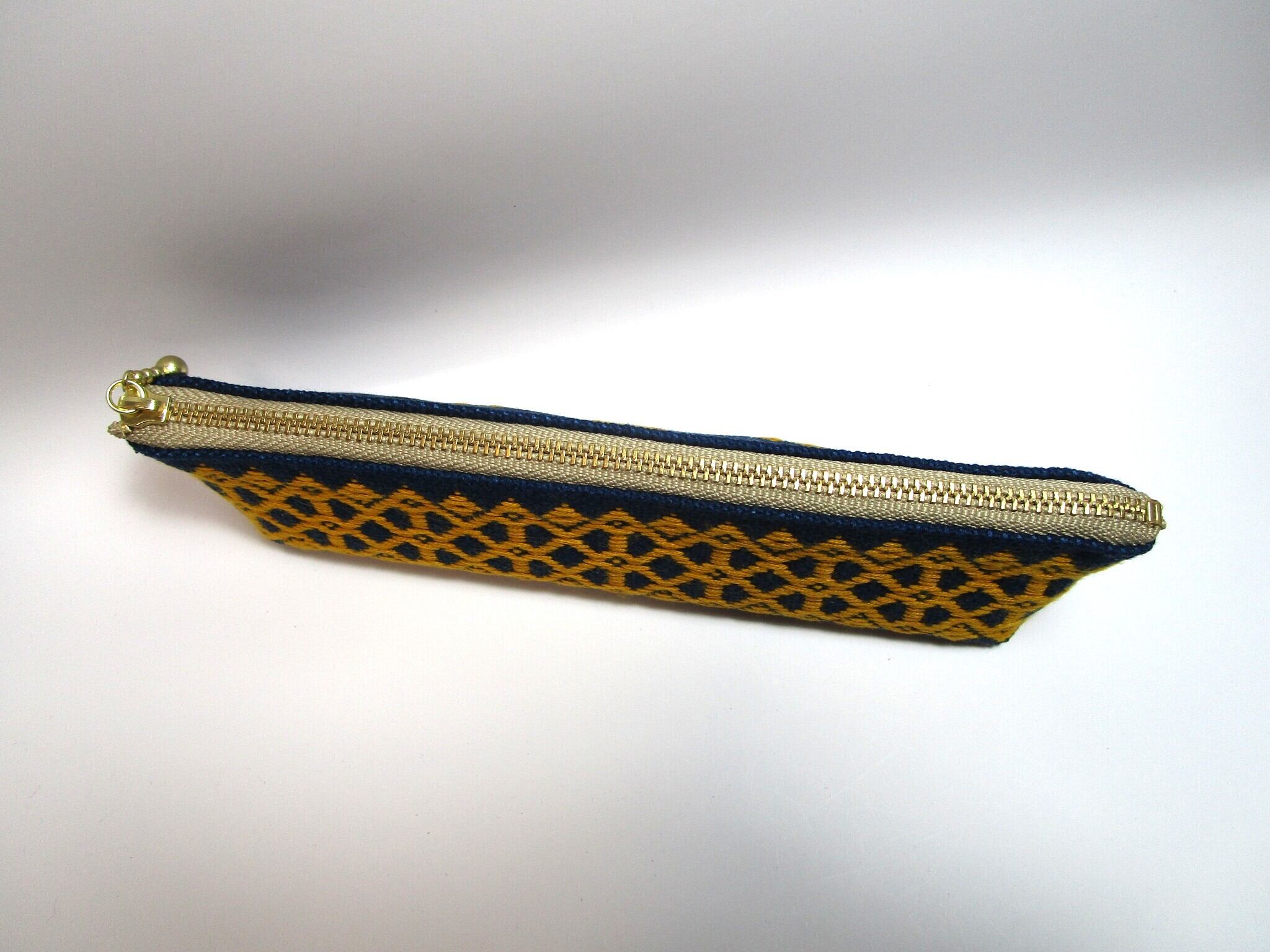 『こぎん刺し』✳️猫の足あと✳️ペンケース・メガネケース ◆ネイビー×山吹色◆